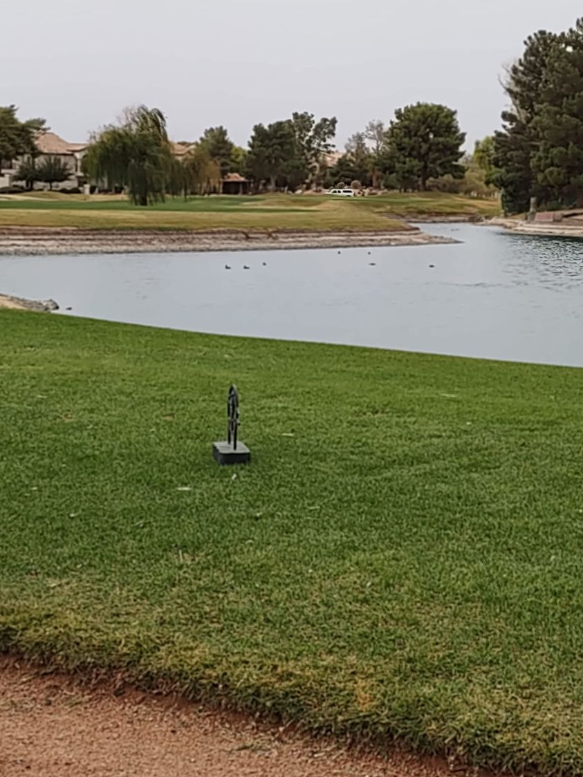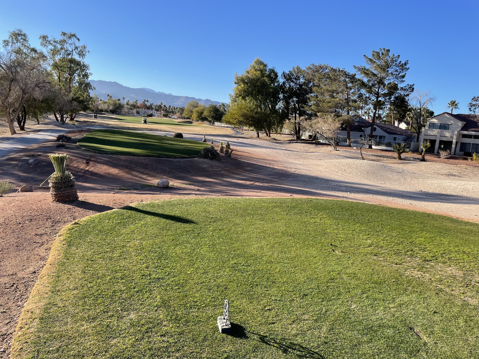 The course is tired, just like the other courses this company operates. It's August, so I want to temper my comments a bit. And the management team isn't responsible for the lame layout (narrow fairways, random bunkering, etc.). By the way, Las Vegas is a desert--you know, all beach and no ocean. So why can't we have sand in the bunkers? This is common at all their courses and it's just sad. Otherwise, the course is in okay shape (with a few greens having some bald spots). But the fairways were rather bare, as was the rough (where you could find it). Just blah.