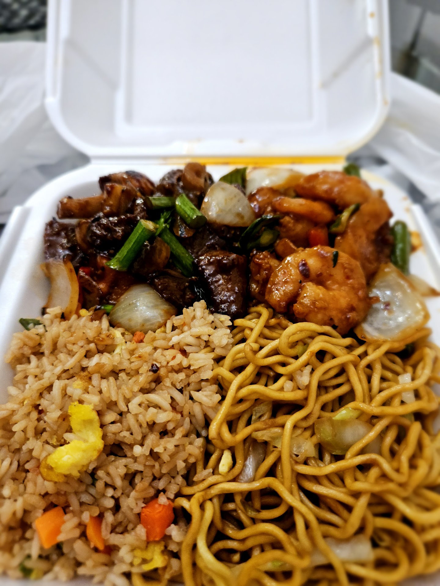 Read moreI was here lastnight at exactly 950pm and I ordered the only two things they had available at the time. Kung pow and steak and shrimp with fried rice. They managed to give us ONE Shrimp with our steak , and all three of the rices they serve, mixed together at the bottom of the bowls with our orders since it was the last if the last and they didn't feel like making more.