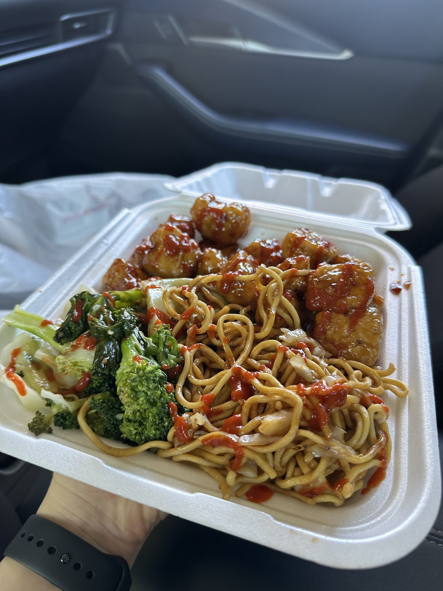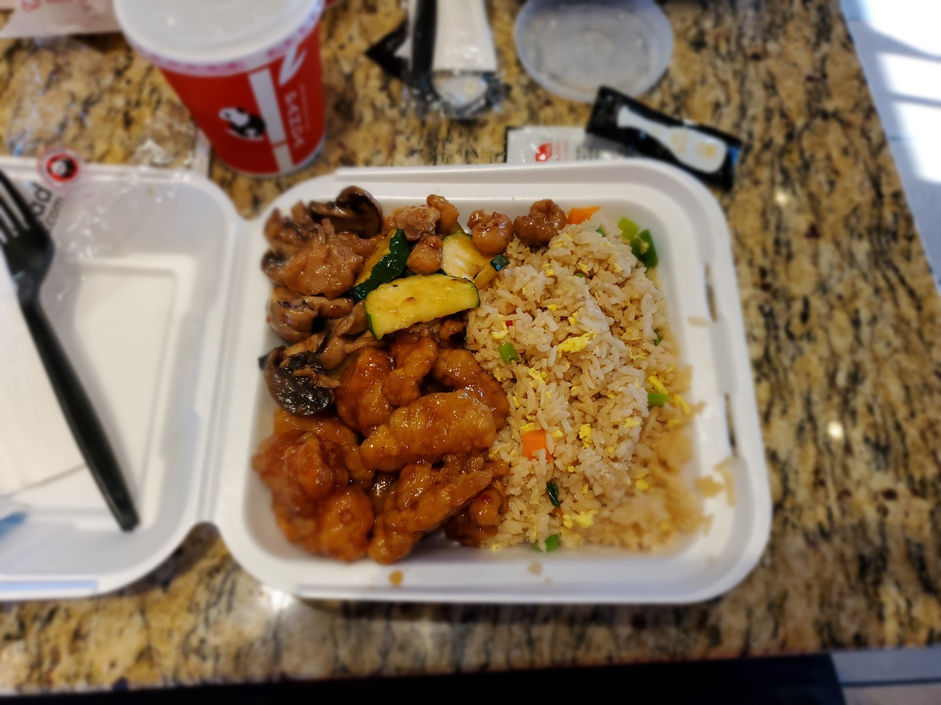 I’ve ordered here a couple of times. When I went in today the restaurant was very clean, and all the food was ready besides the beyond orange chicken. I am very happy that this location has a vegan protein option. They made that fresh for me and told me it would be a 5 minute wait. It was about 5-10 minutes which I didn’t mind since my food would be fresh. I tried to do the survey on the receipt but the QR code led to a page telling me that the survey was expired. I walked around while I waited. Everything was stocked up and they have two hand sanitizer dispensers attached to the walls. The bathrooms were very clean and do not have a lock. They had samples of their fairly new lemonades as well. The samples were not covered with a lid, but I tried the watermelon one anyways. When my food was ready the lady who rang me up was professional, pretty neutral affect. She asked me if I would like any sauces which I really appreciated because it’s not asked often at other locations and sometimes if I am in a rush I forget. There is outdoor seating as well, which is also clean. I would say the area is 50% shaded depending on the time of day. I also use the panda reward app, so it took $1.50 off my...