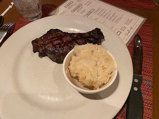 So naturally , I ordered the NY strip steak and it was significant. The portion was large and cooked well. Actually, I got mine medium, and it was cooked to what I expected, therefore it was cooked well. There were potatoes as a side that were a cross between mashed and steamed, chunky potatoes. They called them Delmonico style. Iāve been to Delmonicoās, but donāt remember their potatoes.
