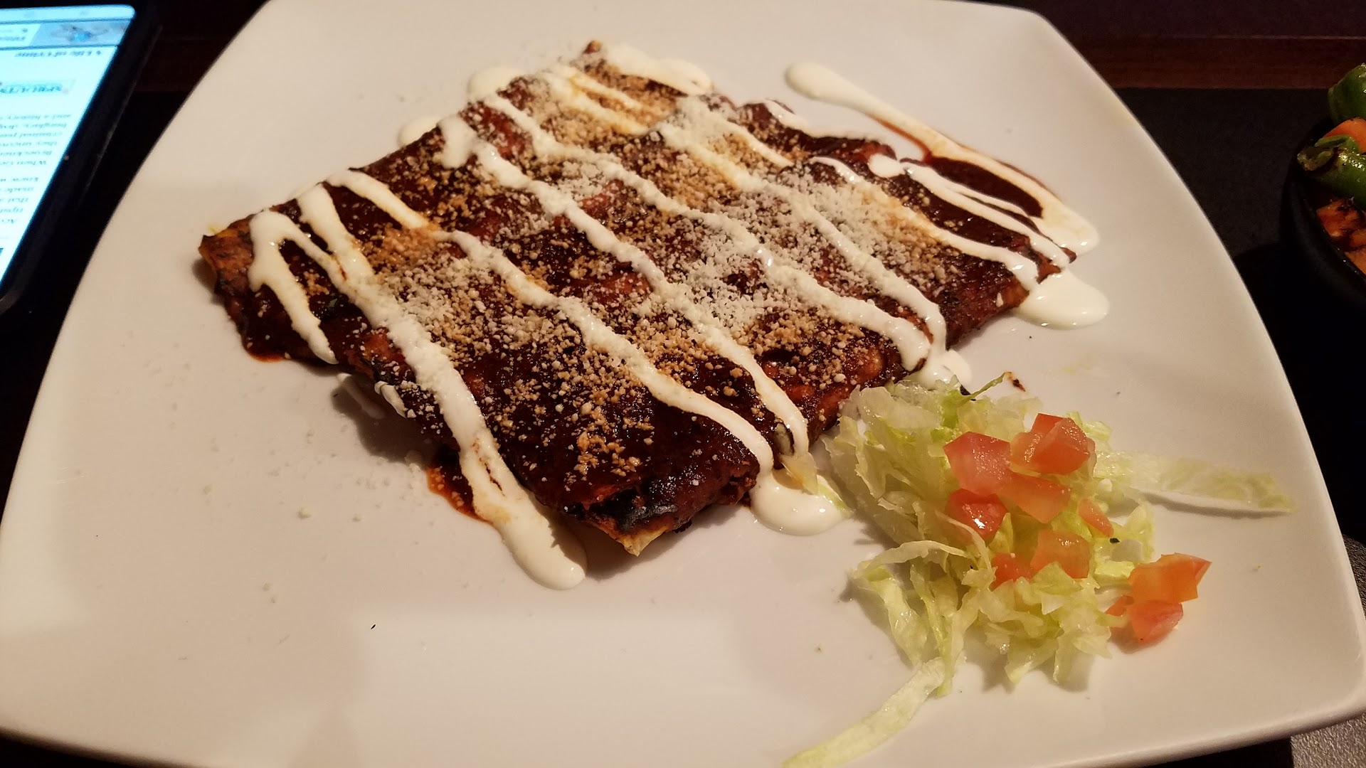 We started with the queso fundido and when it was first brought out there wasn't much cheese on it and they immediately took it back and brought it back out with the perfect amount of cheese (as shown in photos) I opted for the cheese enchiladas with red sauce, usually I go for green sauce but they said theirs is prepared with jalapeƱos so it's spicier than usual!! (I am a baby and cannot handle spice LOL) but the plating of the enchiladas was absolutely beautiful and everything had such a burst of flavor. The enchiladas probably had the best cheese in it that I've had in a looong time here in Vegas. The salsa was perfect as well.