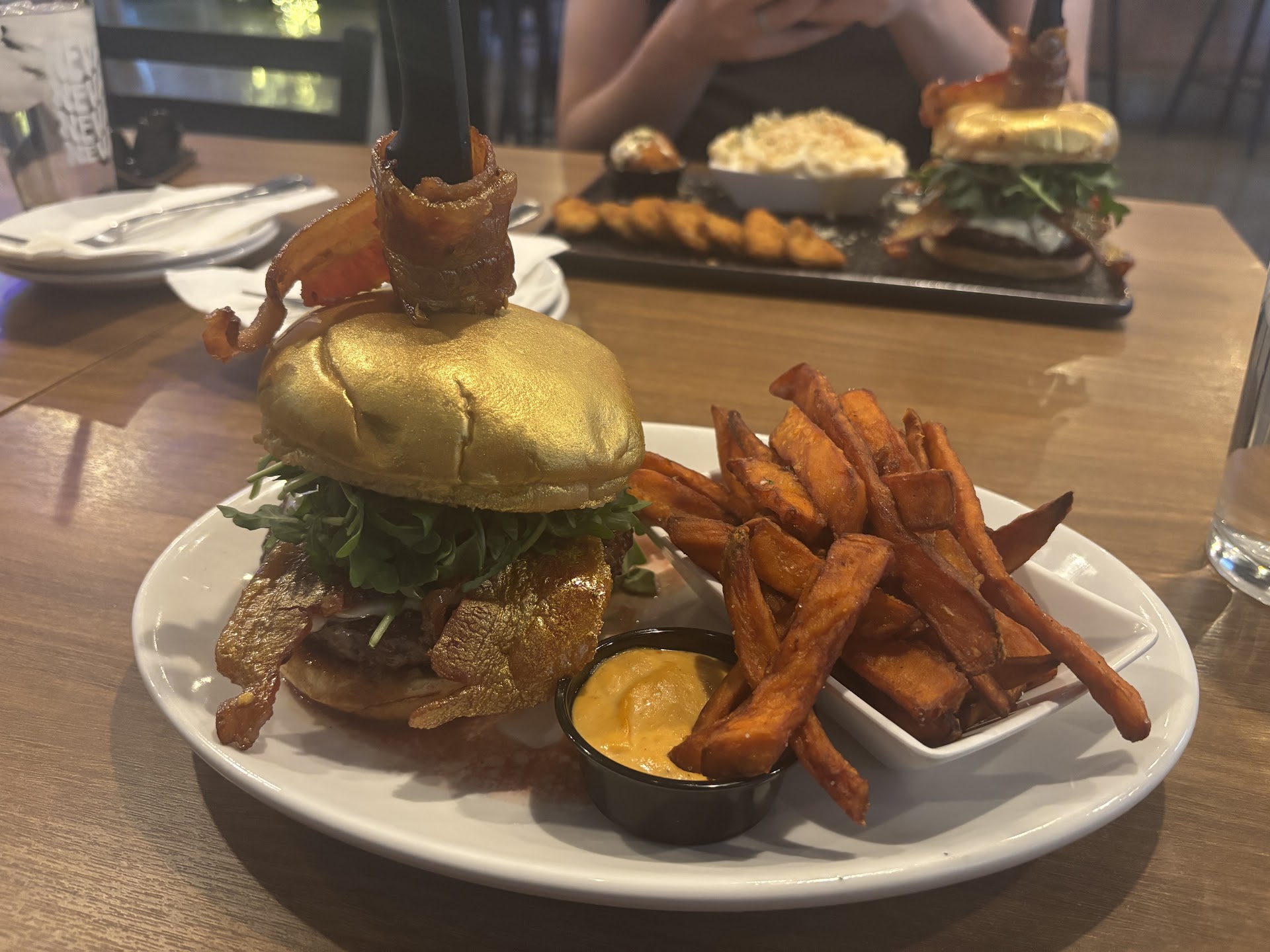 The burgers were not any better. Despite putting ranch and the sauce they came with on them, the meat was hard to bite into, the burger was stiff, and for as much as we had put on them, they barely had any flavor. Five guys burgers blow this place out of the water. The fries were okay, I suppose, compared to how disappointing the rest of the food was.