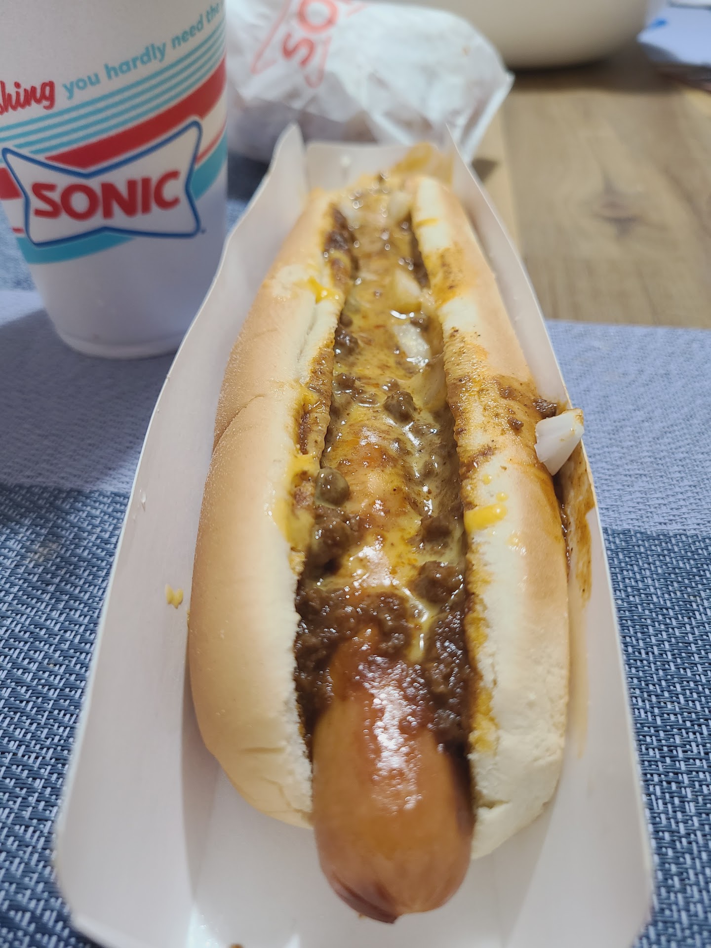 After a very long hot day of taking my mom around to Drs appointments, she wanted a cherry slushie n onion rings from Sonic. After looking at the menu, mom decided she also wanted the sweet Asian chili (or whatever they were called) boneless wings. Easy enough right? NOT. We tried ordering from the app because the drinks are 50% off if you order thru the app. First, the app didn't have onion rings. So I pushed the call button on the menu to ask how come onion rings weren't on the app menu. She said she has never even seen the app, but that she'd come out n try to help us. She of course couldn't find how to order onion rings, so my mom settled with tater tots. I then go to order her cherry slushie, the app said that item is not available at that location. So again I press the call menu n asked if they had cherry slushies at that location n they said they did. I told her the app was saying they didn't. The girl then puts her manager on the speaker. I told the manager how we were trying to order thru the app to get our drinks 50% off n at first there was no option to order onion rings, n now it is saying that this location doesn't have cherry slushies. The manager proceeds to tell me that she hasn't ever seen or used the app either, so I can either order thru the app what the app allows me to or I can order thru her. I again told her the purpose of ordering thru the app was to get 50% off all of the drinks. I was so done n pissed that I just went ahead n ordered thru the speaker so we could get going. I feel there was very bad customer service because on the sign at the place you pull up to order is where I seen that you can get all drinks 50% off all day by using the app. The manager should have manually given us 50% off our drinks. I have worked at numerous jobs doing all kinds of customer service as well as different levels. Plus, whoever is in charge of any location, I feel all employees n especially managers should be trained about the app. It's like asking what comes on a particular sandwich n them not knowing. It is part of your company n a product made for the company, so why doesn't anyone know anything about it? My mom says everytime she goes to that particular location, the food n service is not very good. Thankfully there's another Sonic, even a lil closer maybe, the other direction that she goes to n we've been very happy everytime there. I'm glad the one by my house is super fast, friendly, n goes above n beyond everytime I've been. This Sonic on Nellis needs some work. Not to mention the cold n soggy tater tots I got n the mushy onion...