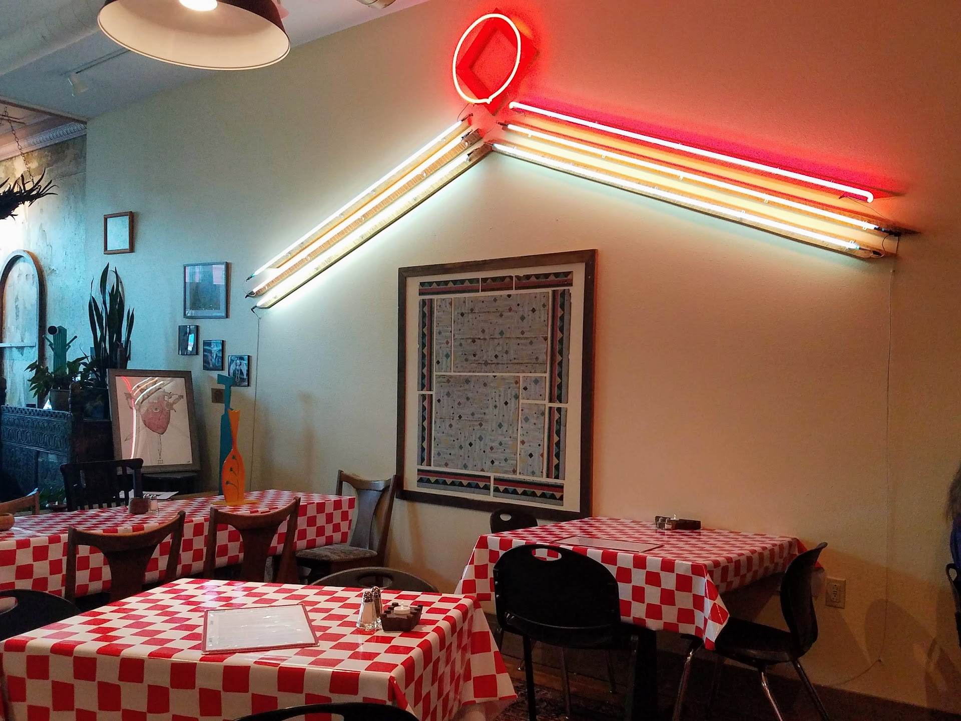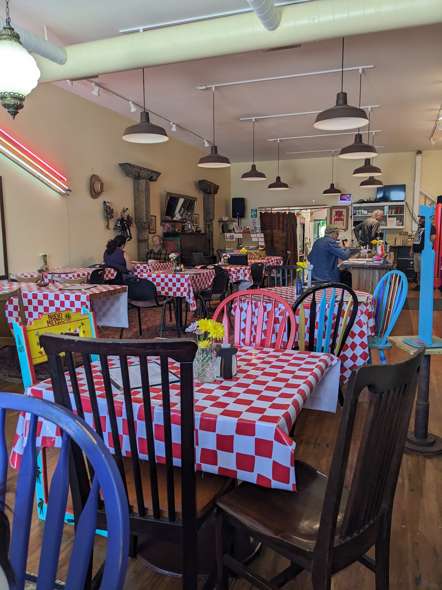 Read moreWe live in Santa Fe and thought we'd try Stella's Cafe last weekend. The service was quite good and the food was, well, different. I don't know if it was the spices or what. Was it good? Yeah, I guess it was. Would we return? Likely not. And I guess we don't care for all the eclectic surroundings. Looks like owner went to every antique store in Las Vegas and put the stuff all over the restaurant, almost like a museum. Not sure how that theme ties in with food. What I thought was odd was the location of the only restroom--it's right there by the cooking area?? Feels unsanitary, although it probably is not. The parking was ample and the prices expected. For the money, stick to SFe.