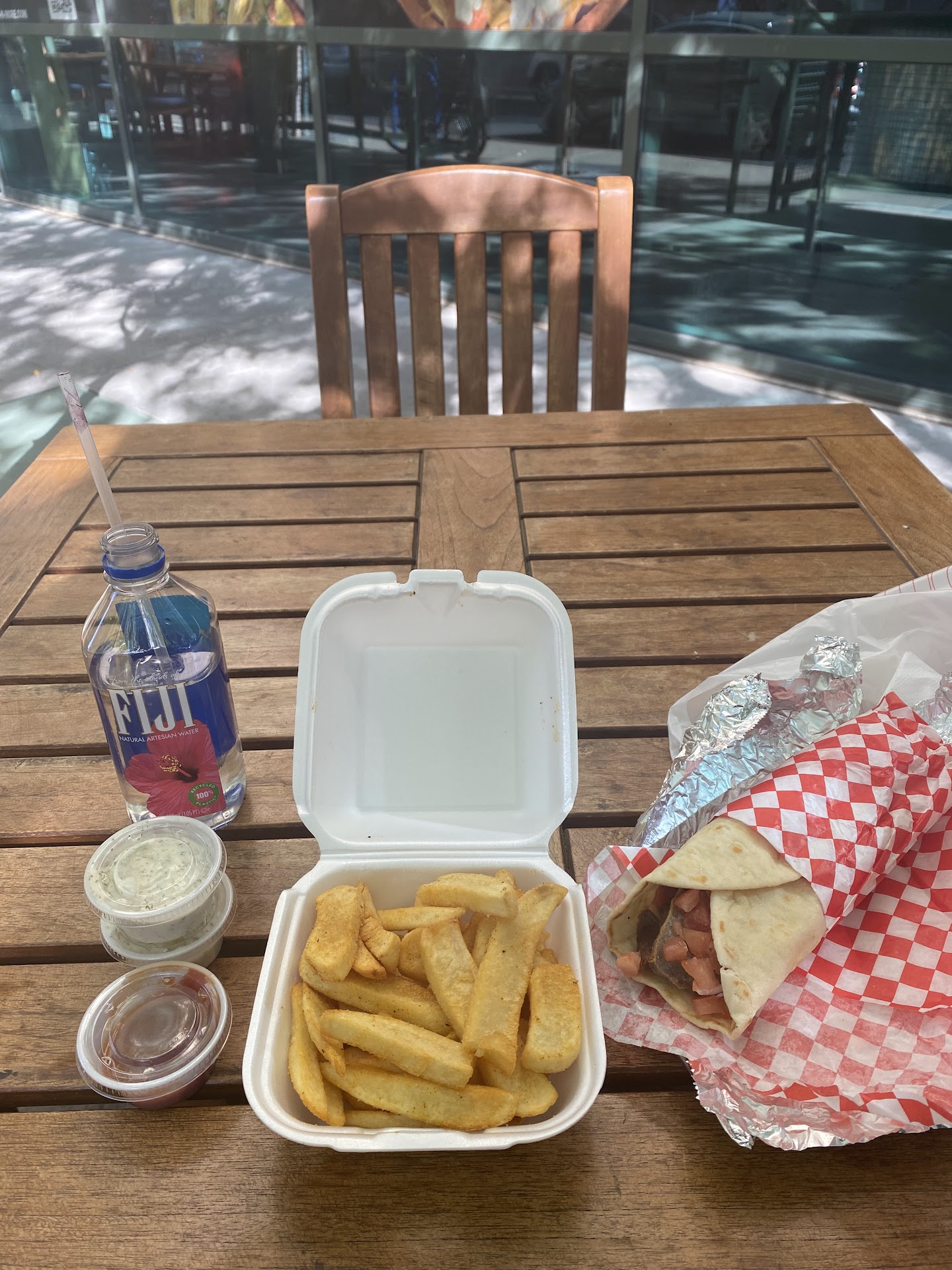 Read moreI got a gyro and fries. Came up to $16. At first glance it looked good but honestly it didnt taste good. The white sauce was flavored heavy with either dill or whatever that seasoning is. Didnt taste like any tziki sauce I ever had. Wasnt a fan at all. The fries looked seasoned but oddly had no flavor. The gyro meat was good but there was only diced tomatoes and onion in the gyro. No lettuce no feta cheese. The pita bread was still cold despite me seeing him put it on the grill so Im guessing it just needed more time. The customer service was top notch though and the establishment was very clean. I personally would be open to trying something else because of that, but it’s no for the gyro and fries...