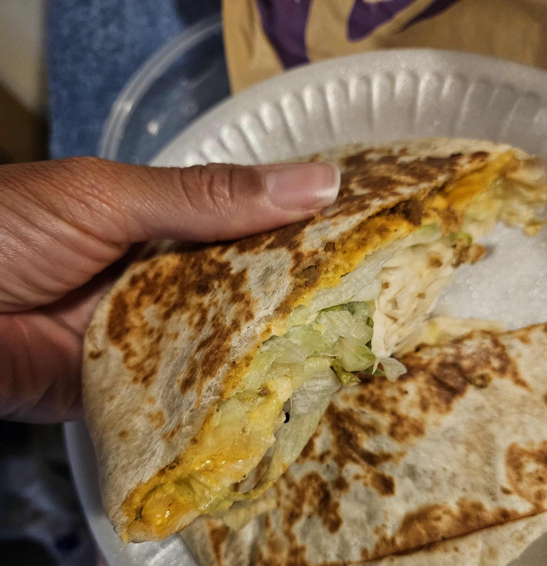 Dear Taco Bell, Throughout the years, you have made flavorful food and meal combos that have fed millions of people. I appreciate the good quality you HAD. Yet. Today, the food is horrible in quality and heavily unproportioned with the so called "beef" in these food items. We ordered the " build your own luxe cravings box" for $5.99 through the Taco Bell app. The crunch wrap and soft tacos barely had beef within them. We ordered the same meals yesterday and today. Yesterday, the small amount of meat was given. However, today, we wanted to give Taco Bell a chance to fix it. I asked a TB employee there to make sure there was a good amount of beef put into our meals today. Our family was still given very small amounts of meat. Please look at the pictures of the crunchwrap. At a glance, it looks packed with beef. Yet after cutting into it. The lettuce is what makes a crunch wrap look bulky with only a thin layer of "meat" at the top. The "beef" really looks like chorizo. Chorizo is delicious but Taco Bell advertises beef, not chorizo. We will never eat at Taco Bell again. It's a constant misrepresentation of their commercial food versus the unrecognizable and distasteful food...