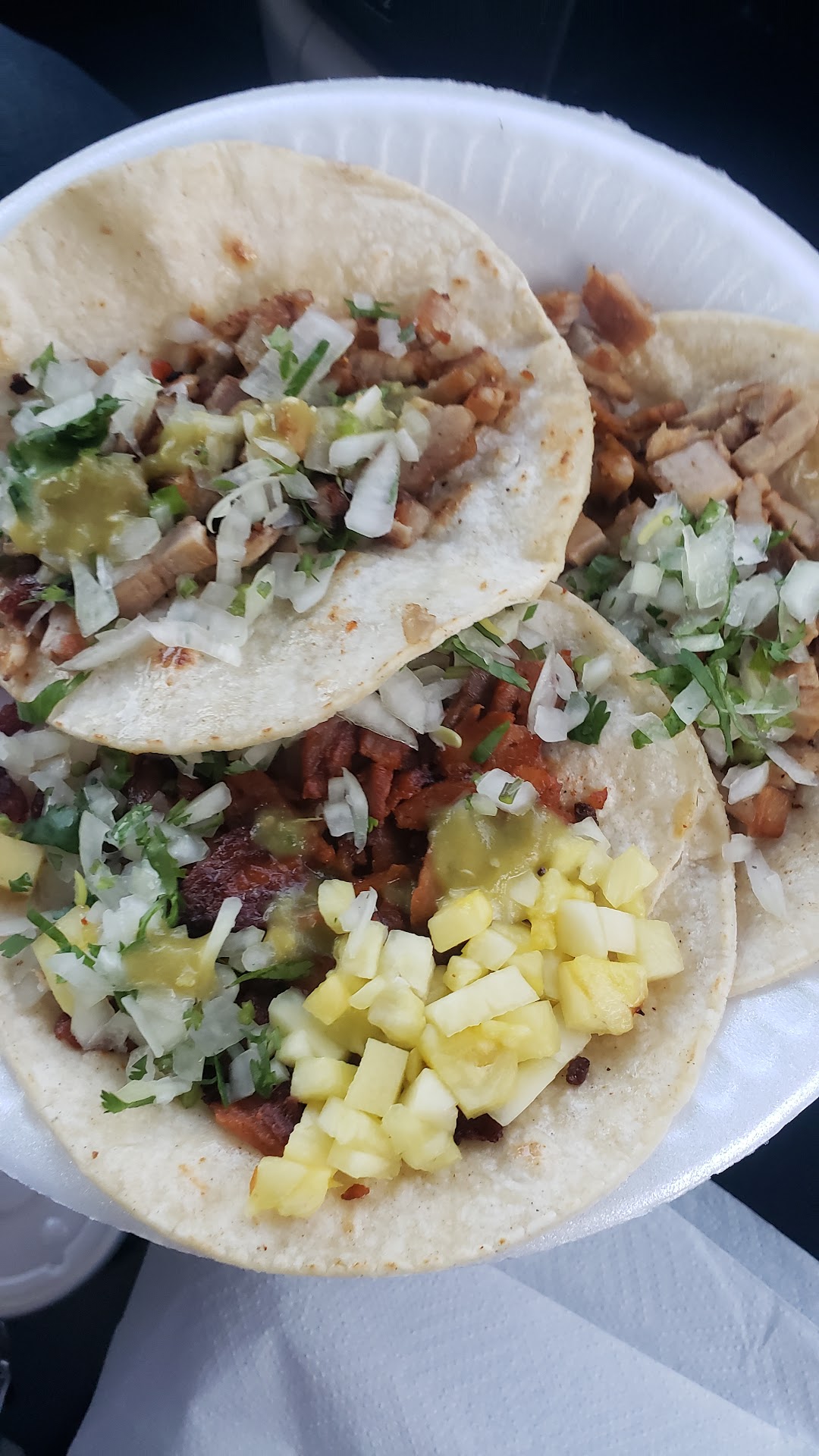Looks dead, but only because they feed you quick, so traffic is speedy. A little more on the pricier side ( $4 tacos ) but I believe they're handmade tortillas. Either way you get what you pay for, and if you dislike kindly get their attention, I'm sure fairness will be done. Felt Welcomed, Was spoken to like family, by saying God Bless, take care, thank you Mija, These tios are kind and great chefs 🔥 There's like 4 or 5 chefs so food was done quick and so delightful 😊 I was immediately given condiments, that not all taco trucks give, for example sautéed onion and radishes! Food is delish! Chicken is the red kind, looks like pastor(pork) but it's chicken Red salsa 8/10 Green surpassed grade scale 😋 +++++10 This spot earned my time for a review ! Thank you tios ! Also I believe there's a few spots of theirs as I called the number, the guy asked which location I was planning on attending. ( called to make sure they're open )