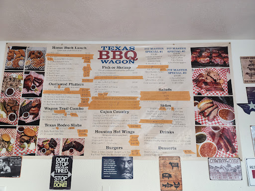 Read moreYesterday my husband and I had the pleasure of eating at Texas BBQ wagon. We were looking for some tasty ribs and, boy, did we find them. First, the place is actually in a strip mall but you step inside and you're in a cozy BBQ joint. Their menu is quite extensive. Ribs, pulled pork, brisket, catfish, shrimp.... so many choices!