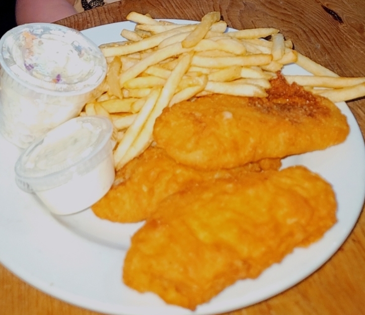 The next thing is the food. The food was not fresh. My fish sticks were frozen and fried and the presentation was pretty terrible. My neighbor's hamburger was literally thrown on a plate.