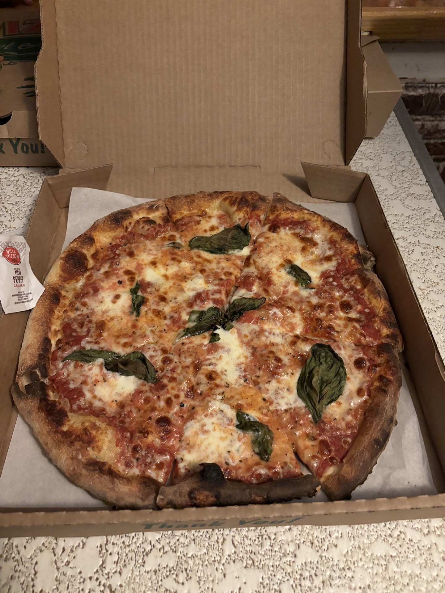 Found this place with a map search traveling to a campsite from a hot springs in the area. It was a bit easy to miss because it's in a small shipping container with a dispensary next door (which is brightly lit, so I'd keep an eye out for that when driving by!) I was surprised by a giant wood fired oven, and some of the best crust I've ever had. Seriously. Thinner and crispy and soft and chewy all at the same time! I got the Margherita and I ate the entire thing by myself.