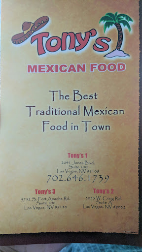 Read moreTHE WORST MEXICAN FOOD I HAVE “EVER” HAD! OMG. It was so NASTY. The enchilada sauce was not even enchilada sauce. I think they use tomato paste to make the enchilada sauce. It was so red like blood and the taste did not taste like enchilada sauce or the consistency. The rice was overcooked like oatmeal. I really can’t believe that they would sell this trash to their customers. I spent $20 for the NASTIEST FOOD IN LAS VEGAS. When I called the young lady to tell her that her food was so nasty the only thing she said was OK with a “I DON’T GIVE A D___ tone. She didn’t say she was sorry or I could come and get my money back. I just really can’t believe they would sell this dog food to humans.. Never go to Tony’s Mexican restaurant on Jones Boulevard. ABSOLUTELY HORRIBLE. I PROMISE. Do not waste your money you...