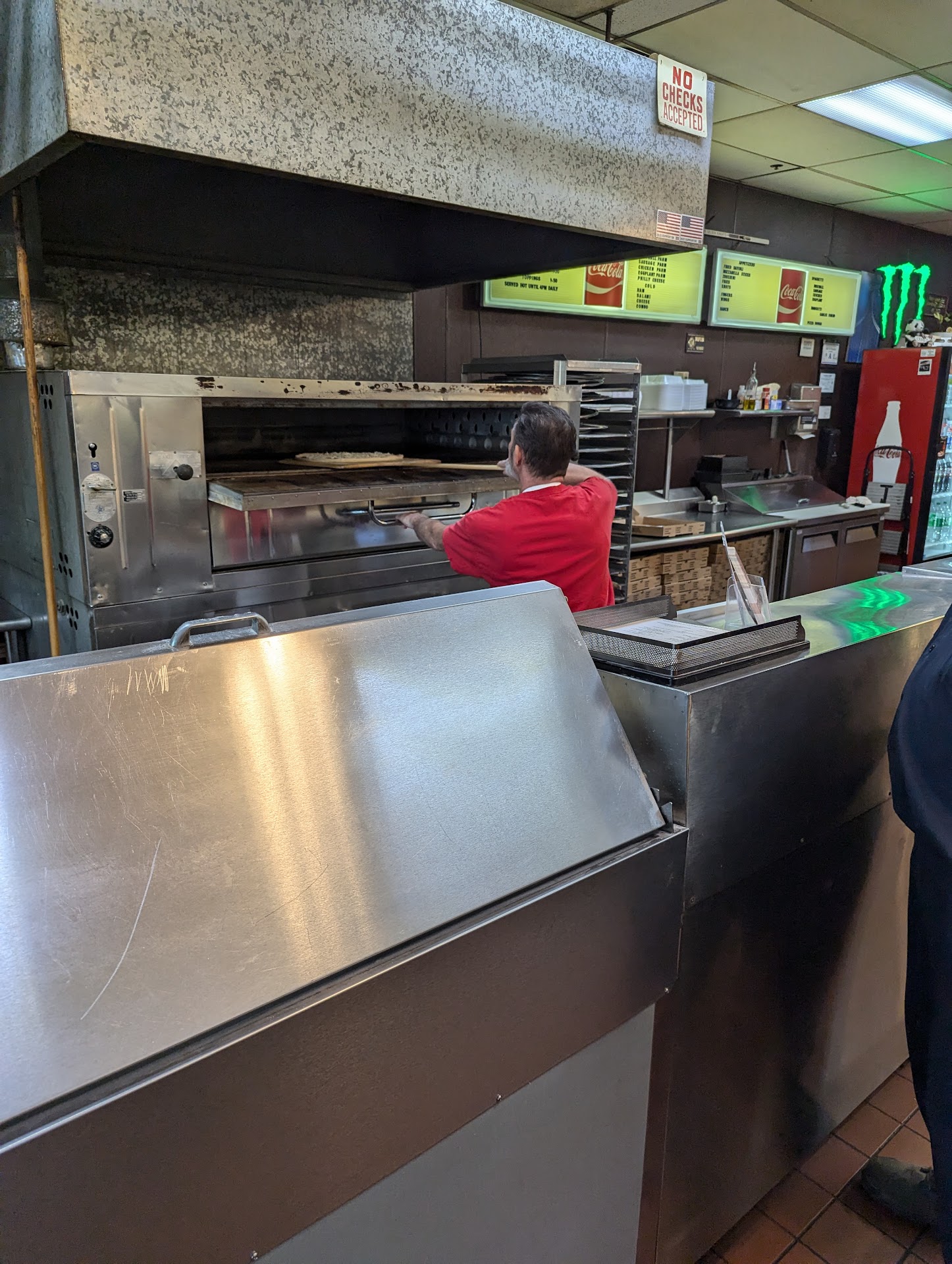Read moreThis restaurant is located in a mini mall on the west face of Rainbow. It has a small elongated indoor dining area with about eight or nine tables. Music playing with an upbeat atmosphere. Funny stuff was playing on their TV. It took us awhile after we were seated to get our drinks. The service was very friendly. A lot of regulars were in and out as we were there. We ordered the Verrazano Pizza. They asked if we wanted it regular or a little bit crispy, and we said a bit crispy is good, and we thanked them for that opportunity. It was fantastic! The crust was perfect, and a little bit crispy, just like we ordered. It was the perfect amount of toppings on the pizza, and I do mean perfect. Some places put on way too much cheese, or not enough. This place knows exactly how much cheese to put on a pizza, and the cheese was excellent. Speaking of perfect, the sauce was also very good, along with all of the toppings. Refillable fountain drinks were available for indoor diners. We will definitely be back to try some of their other offerings....