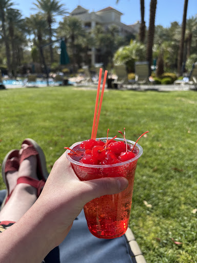 I love Shirley temples and I’ve sipped my fair share of them too. I always ask for extra cherries cause I love cherries. But here they went above and beyond the whole staff on general did. But this bartender put about ten cherries in my drink after one of the members of my party requested a bunch of cherries. Honestly this is the best Shirley temple I’ve ever had and I’ve had quite a few. My friends banana daiquiri was delicious as well. But seriously this place is as good if not better than a ritz Carlton or a lux cruise bar. I’ve never been so impressed by a pool bar. Plus this place is only a 20 minute drive from the strip and is a respite from the bustling strip. So come here if you have the chance. You won’t regret it. The bartender who gave me my exquisite Shirley temple‘s name is Kelly. And the one other guys name is Brandon. This...