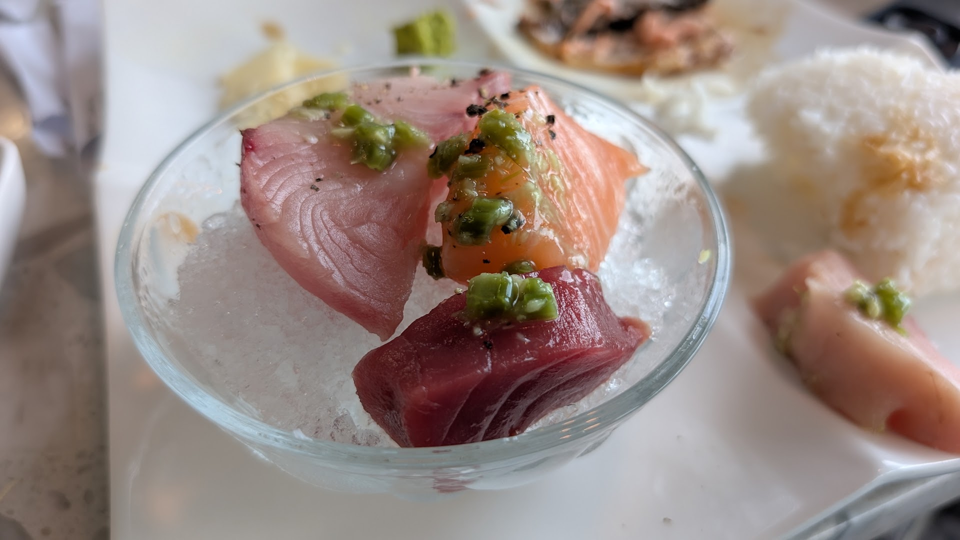 Read moreI have a couple local sushi joints that I have picked out over the years for mainly their quality among other factors. If you eat sushi, you know quality means everything. I travel a handful of times a year. Whether it’s business or personal and I try to venture out to sushi bars/restaurants on my travels. I’ve been to quite a few over the years. Recently, I traveled to Lathrop, California for business. I found this place on Yelp just down the road from my hotel. I always check reviews before eating at a new sushi bar. This place had a pretty good rating 4 - 4.5 stars, so I figured I’d check it out. I sat at the sushi bar. The place was clean and had a very pleasant atmosphere. My sushi chef’s name was Shawn, whom I found to be the owner. We had a very nice conversation, which led me to asking questions about the history of his restaurant. They’ve been in business since 2013, and survived through Covid. I noticed there were 5 or 6 awards displayed proudly for being voted best sushi restaurant. When I mentioned it, Shawn spoke about his quality standards and how much it meant to him. Service at the restaurant was top notch! I ordered the Sashimi Moriawase, which is the chef’s choice of select cuts of sashimi. I was blown away by the quality of sashimi along with the preserved wasabi, which I had never had. It was so good I caught myself eating it off the chopsticks by itself. Who eats wasabi by itself? As I was walking out thinking of my local spots, and the places on my travels, and how Amici Sushi might just take the #1 position on that list. I returned a second time during that week and was just as satisfied when I left. If you like cheesecake, you have to try their Japanese cheesecake. I ordered strawberry and it was the most well balanced slice of cheesecake I’ve ever has. This was quite the dinning experience for me. If I ever make it back to this area, Amici Sushi will be the first...
