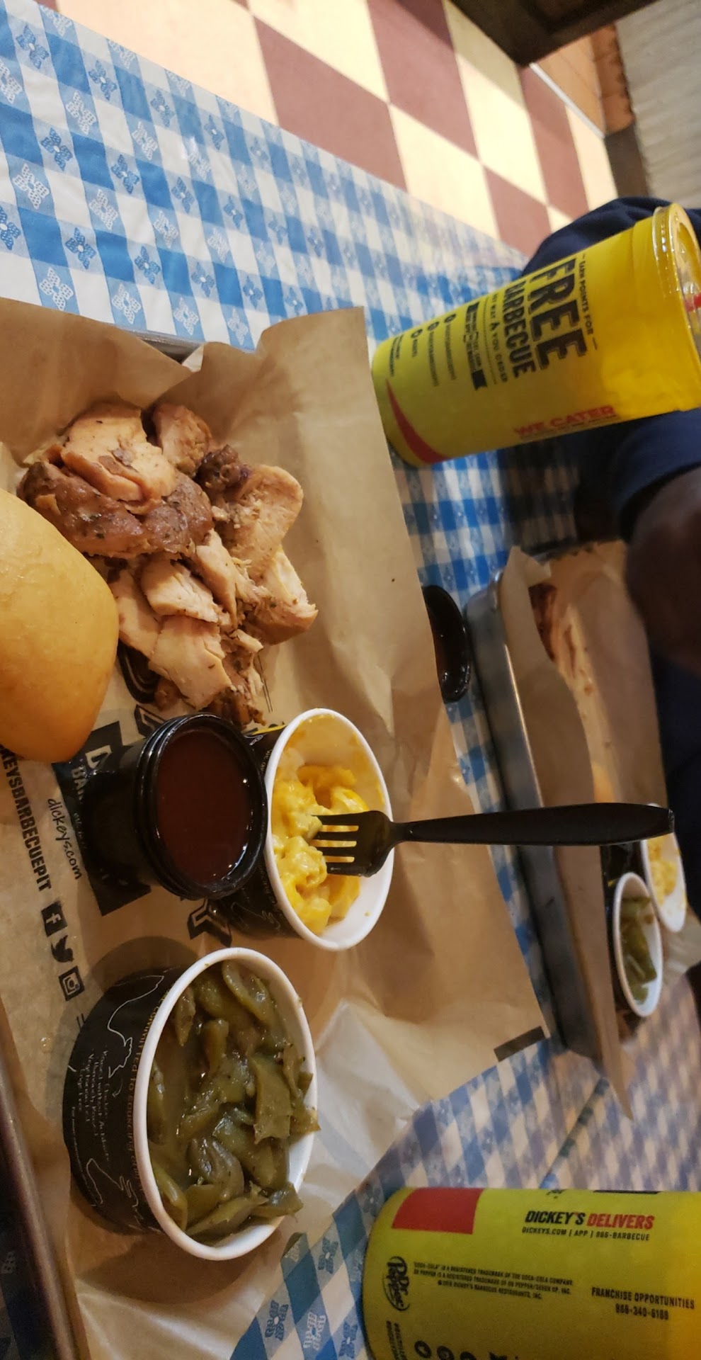 Ā Ā Ā Read moreRude manager. Terrible service. I ordered on the app and when I arrived the manager asked me if I was picking up and I said yes. He then didnāt believe that I was picking up the order even after showing him my order receipt on the app. He then said that they didnāt have the order and then he looked down at the order that was in front of him the whole time and said oh itās right here. Then he said that they were waiting on my baked potato and it would be about 6-8 minutes longer. I asked him if I can grab my drinks that are already filled and refill them when my order was ready so that I can have fresh drinks with my food. He then started arguing with me about how Iām giving him a hard time and Iām being ridiculous and so on. I told him ālook Iām being nice about it and I just want to have fresh drinks and youāre giving me a hard time for no reasonā he just grabbed to empty cups and handed them to me. Ive come to this dickeys a lot of times and never have received this terrible service like today. I ended up getting my order 20 minutes after it was supposed to be ready. Such a disappointment. Food was cold by the time I ate it 10 minutes later...