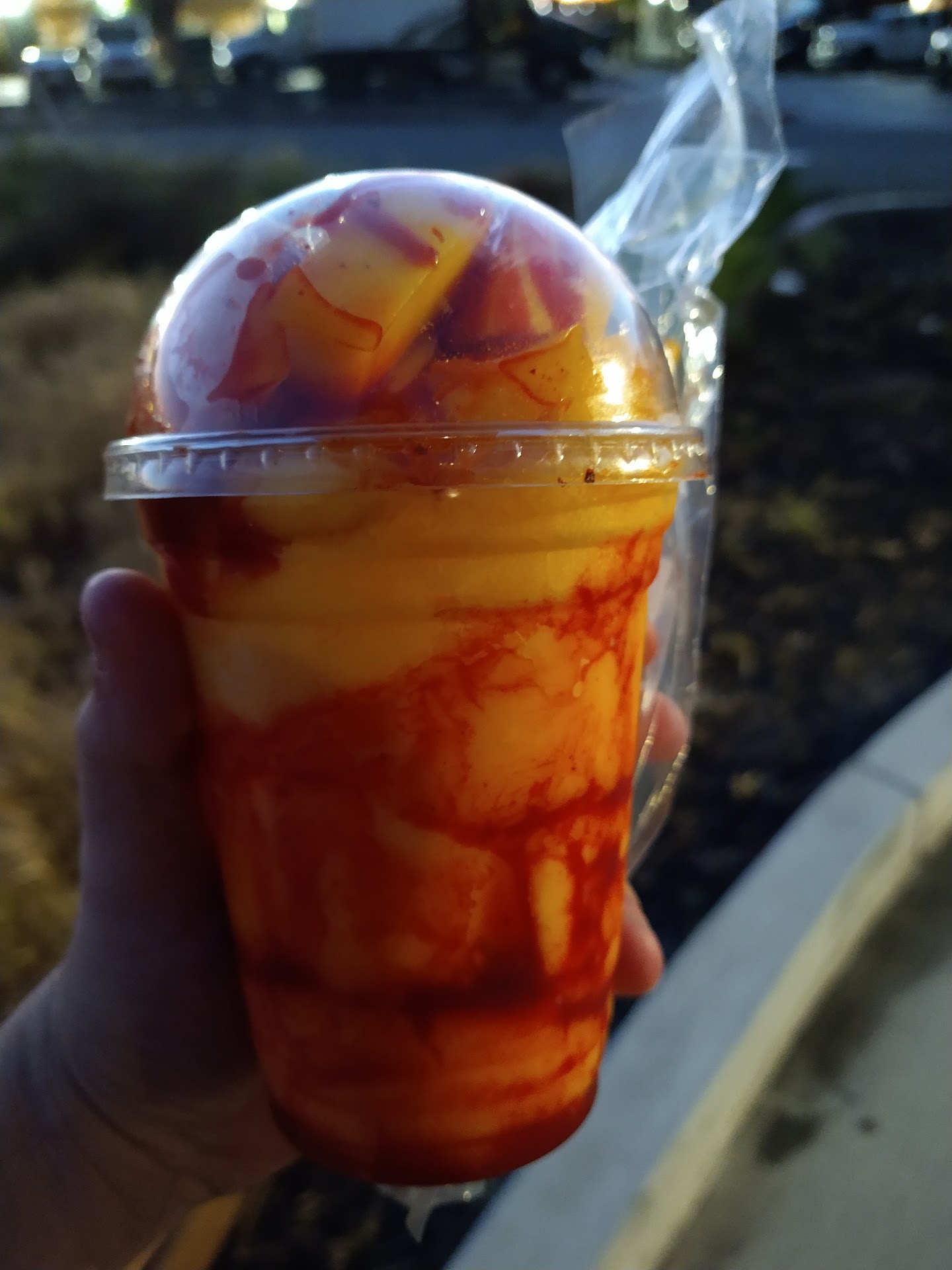 I was staying in the hotel behind here and wanted a late night snack, so I decided to check out just how Crazy the Mangos are here. I've had my fair share of mangonadas, and I would put this one towards the lower middle of that pack. The fruit itself seems fresh, had a good texture about it and the spice will really kick you in the face at first. As you get down, instead of an almost smoothie texture you get with alot of mangonadas you get almost a packed ice sorbet type of blend towards the bottom which was interesting. I would've liked more chamoy on it but then again, that's just me. The staff seemed like nice kids, the place itself was somewhat dimly lit and I can't say that it seemed like the most well stocked or clean place but it was alright for what it is. I went on a Monday and considering fruit is best served fresh, they probably don't make much to have on hand since it's a slower day for them. Overall, a good little convenient...