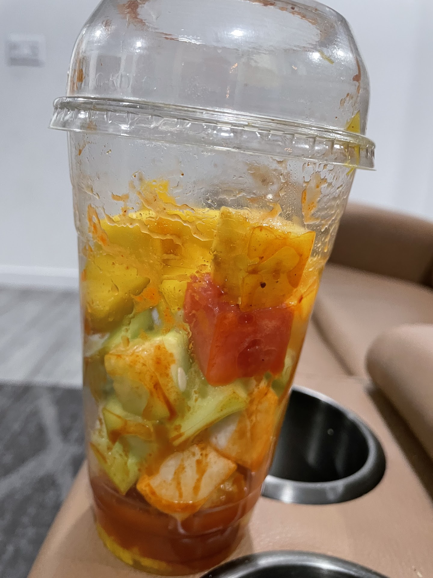 Read moreI bought 2 fruit cups with sweet N savory. As we start eating the mango and watermelon it tasted really good. But when we start to eat cucumber it tasted very bitter and couldn’t eat. I spoke to the staff about the cucumbers but they are least bothered to check. After waiting for 5 to 10mins I left the shop and I am really annoyed and they might have served other customers with the same bitter cucumbers. Hope they listen to customer feedback...