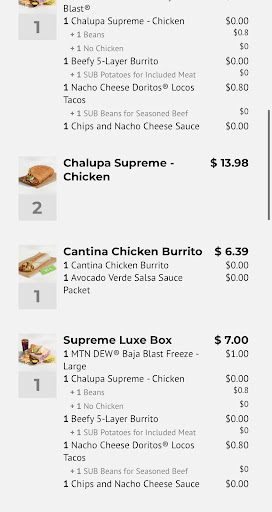 Read moreSo I drive a truck for a living and I rarely eat out. But today was payday and I thought I treat myself to Taco Bell I know right but I go in there and I ordered a Cheesy roll up a bean burrito no special orders and two soft shell tacos and I leave and I'm about 45 minutes down on the highway to where I can comfortably eat it without traffic halting my lunch. And lo and behold I have two soft tacos no cheese I have not a bean burrito but I have a rice Bean mixture of sorts I don't know I've never ordered it and there's a reason why cuz I don't like rice the only thing they got right on my order was the cheesy roll up very upset with no response from the store / company when I called two separate times. I definitely would not return again without some sort of...