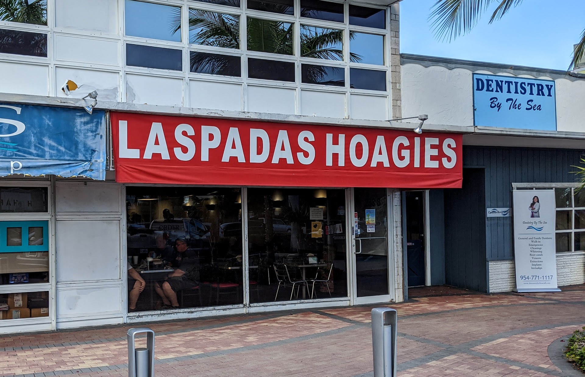 The first LaSpada's Hoagies opened in Lauderdale-by-the-Sea in 1973. The sub shop was opened by John LaSpada Jr. whose family was in the sandwich business. His grandfather was famous for having opened his first hoagie shop in Atlantic City in the 1930's. In 1978, LaSpada sold the business to Harry and Gale Kappes ,who along with their son Phil, now operate 5 locations in Broward and one in Boca. The Lauderdale-by-the- Sea LaSpada's was moved from it's cramped store south of Commercial to this roomier location in 2013.