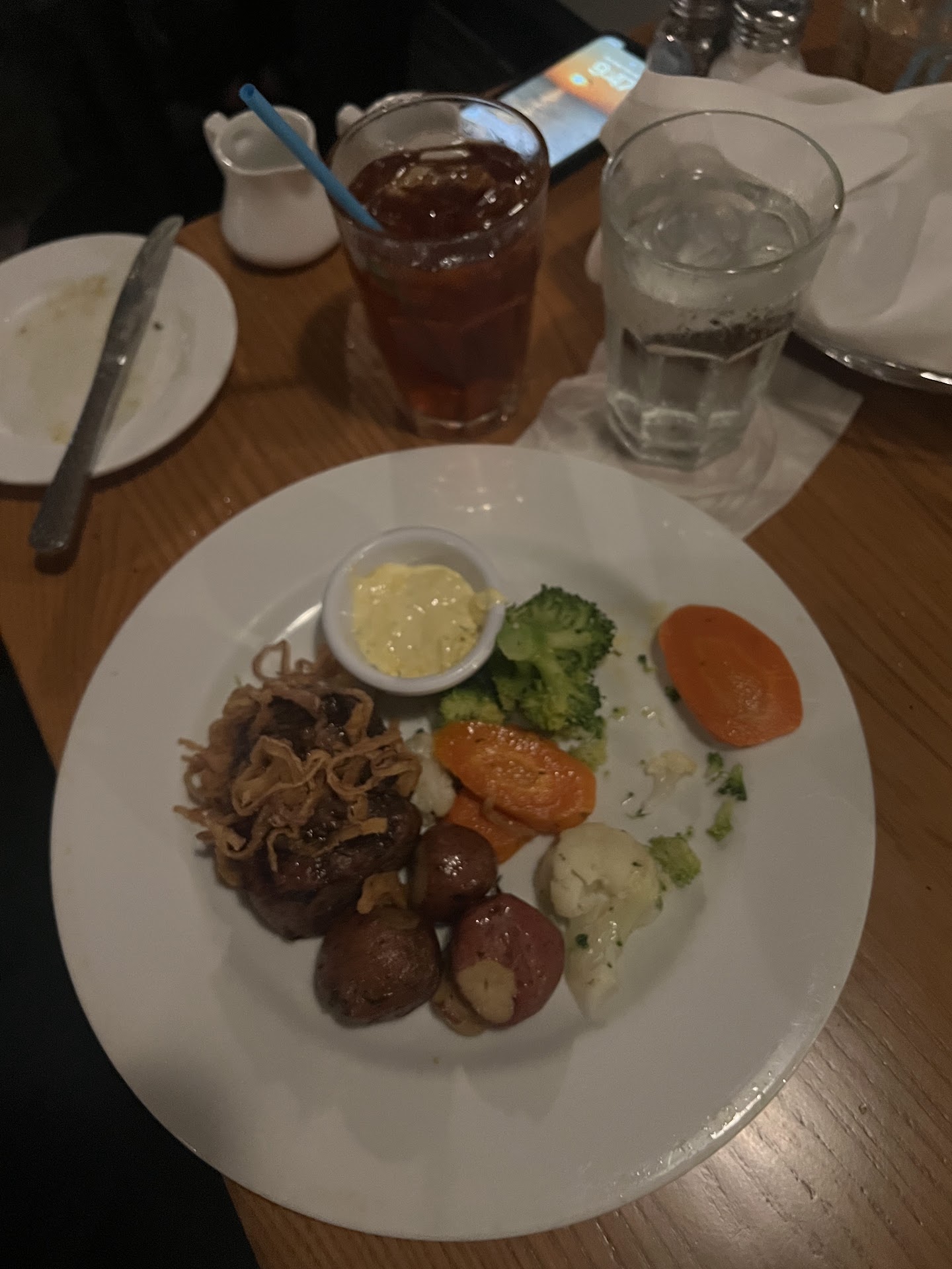 The replacement filet showed up about 10 minutes after everyone was done eating, at that point, the meal was already over. We still ate it, but it wasnāt anything special. The side potatoes, though? Really good.