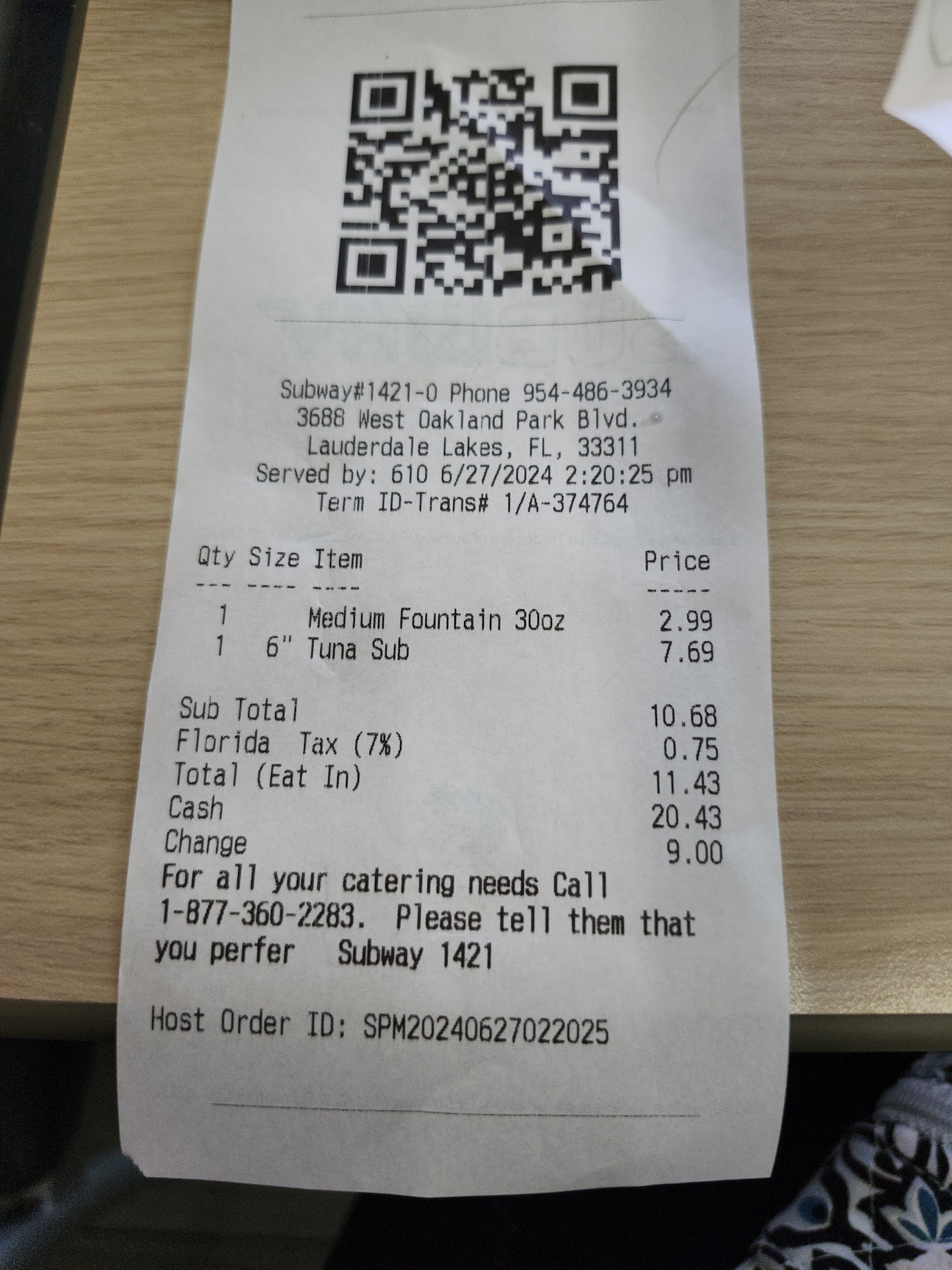 Read moreI can't even select one star. Worst restaurant experience in my 24 years here in Florida earth...ordered online...waited until the time the app said it would be ready and went inside only to be told that they had no wraps and could not complete the order...then they couldn't tell me how to cancel the order or how to receive my money back..... they just ignored me..... basically I was being robbed by Subway