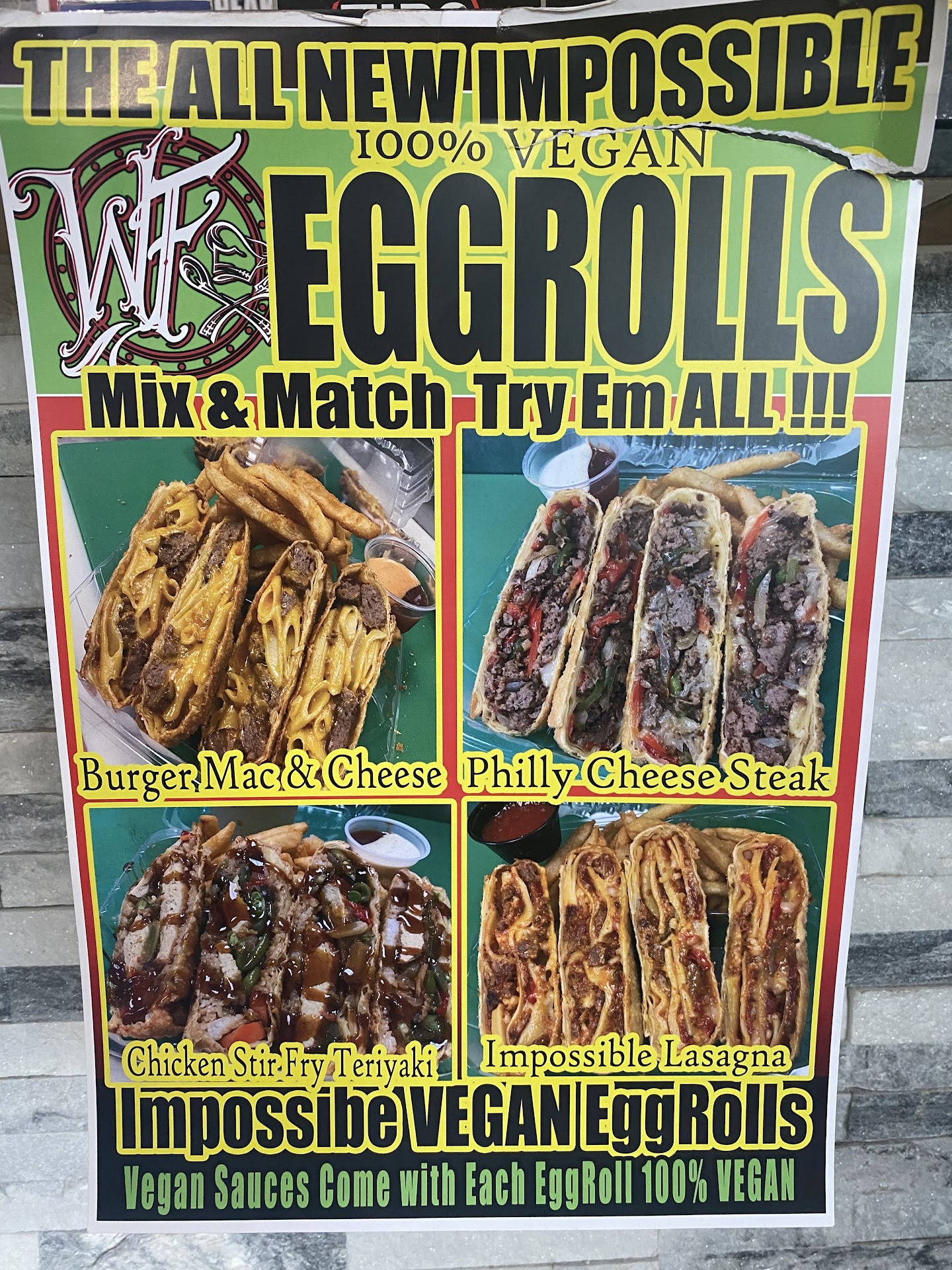 Read moreI wasn’t even sure this was real, so I had to see for myself, and yes it is real and it was was incredible. The people at World Famous Eggroll Truck have rolled out 4 Impossible Meat egg rolls, to join the 2 other vegan egg rolls they have on the menu, and the results are insane! The brand originated as a food truck, but now has at least 4 store front locations, we visited the Oakland Park location to sample these egg rolls. Now you know anything that is called “World Famous” will usually have a wait, I suggest ordering ahead as this is a carry out and to go location and there is no seating or anywhere to wait. Ordering on line is easy, as the egg rolls are pre made and then cooked fresh to order, so there is no alterations of ingredients. The 4 impossible meat options were, Philly Cheez Steak, Chicken teriyaki, Beef Lasagna and Beefy Mac and Cheese. They also had a falafel as well as stir fry veggie egg roll on menu too. An order of 2 egg rolls (cut in half, so 4 pieces) cost $9 and you can add fries for $2.83 or enjoy without. They have a few different seasonings for the fries but only 2 are vegan (one has cheese and the other honey) we had spicey fries and the lemon pepper vinegar fries and they gave a us a free order of plain fries too. As for the egg rolls, we ordered all 4 impossible egg rolls, and the wait was a little longer then expected, so they kindly comped us the falafel as well. The falafel was very tasty and went well the vegan sauces they included. As for the impossible egg rolls, they were well worth the wait and a good value for the dollar. Each one of them tasted so good and they were all vegan, even the sauces! I would probably order just Philly cheez steak and chicken teriyaki next time. For me the lasagna and Mac and cheese was too much noodles, and I wanted more meat, being that is is wrapped in an egg roll, but that is just my personal preference, the taste of all 4 of them were spot on and fabulous! I am so happy this owner has continued to grow the Vegan menu and from what I am told, has plans to keep growing it too! Not sure if vegan options vary from location to location, I would check first to be sure. This was the location off Oakland Park Blvd in Lauderdale. — at World...