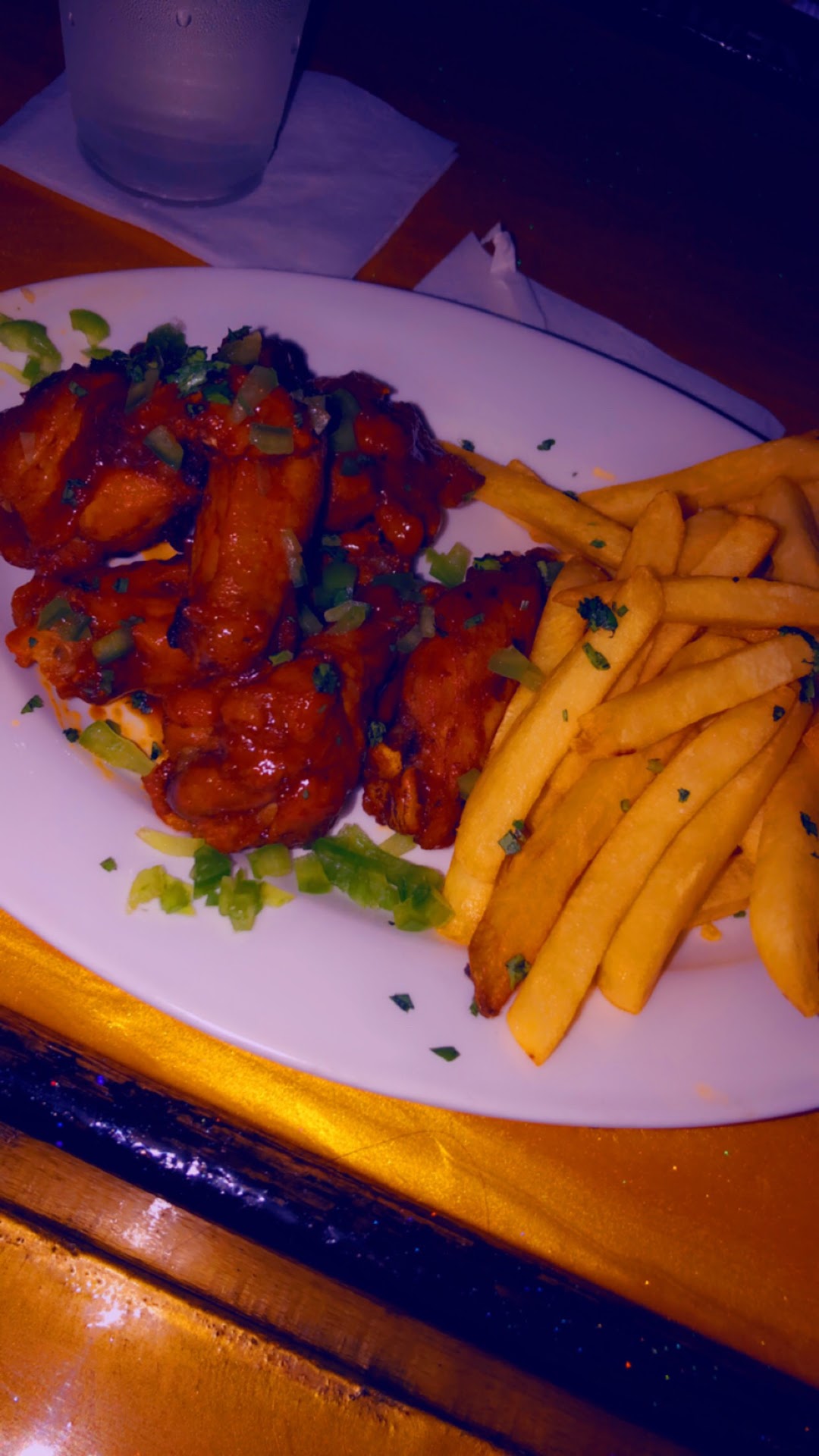 Read moreThese lemon pepper wings may be small but the flavors were there! Crispy fries too. Drinks where sweet and Strong all night try the sunset surprise. The bar it’s self is gorgeous but if you aren’t in a section the tables are all barstools which is NOT short girl friendly nore plus size friendly so keep in mind, especially wear dresses. $5 drinks on Thursdays my total was only $35 not...