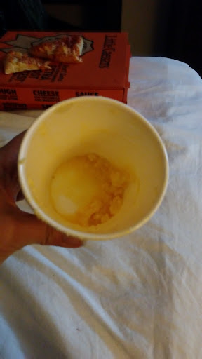 Read moreThis literally was the worst pizza/ crazy bread experience I've ever had in my life with Little Caesar's and I've been eating it Since a kid. The crazy bread wasn't cooked and was absolutely unedible there was almost two full garlic cloves worth of garlic on the bread and drenched in butter and or garlic sauce. I literally poured the liquid out of the bag and wiped off as much of the garlic as I could but then add the bread seemed as though it was raw I truly thought this atrocious crazy bread was intended for someone trying to get revenge or something. I won't ever return to this little Caesar's again. Literally could not eat. Then the pizza had way way too much red sauce save almost no cheese it seemed as though it had to have been this person's first pizza. This location had not been the best to begin with but they have gone down hill completely. Add in my fiance had to wait an extra twenty minutes in line when we ordered ahead of time to use the pizza portal but he wasn't able to retrieve our food because although it was "ready" I use that term loosely, they had failed to enter our code for him to open the food portal with our code. Trust me drive the extra mile and a half to the other location near by. In the pictures in the garlic and liquid from one crazy bread bag. Honestly I'm lucky it didn't spill out onto my car seats and managed to leak to the top of...