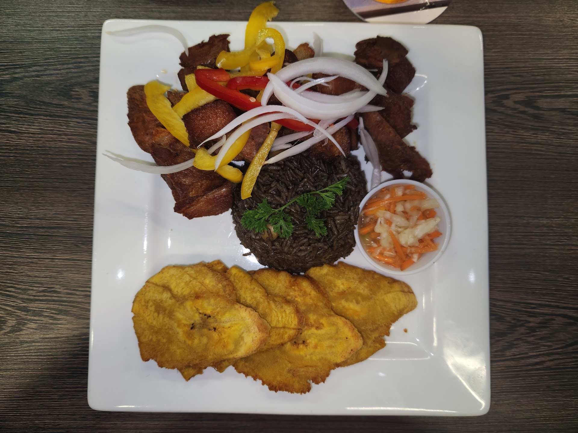 Read moreFound this place by accident however in life I’m learning most GREAT things are found by accident and this place was no different. I came to pick up my mother from her overseas travel and she was hungry to say the least. She requested Haitian food and so my search began and we started to make our way to this restaurant because it was close to the turnpike. From the moment we walked in I knew it was the right place. The decor was tasteful and modern and the place was spacious. They had a selfie wall which kept my young brother busy for a bit and I can admit I even took a photo myself. Don’t want to forget to mention they have a FULLY stocked bar to which my companion enjoyed a glass of Hennessy while we waited for our food to come. The owners were there and they were personable and professional and might I say prompt. I ordered the fried pork with the black rice and it came with fried plantains and what we like to call our spicy cabbage and it was simply the best. The meat was seasoned and fried to perfection. The portion was just right. My mother ordered the legume which is simply put our version of mixed vegetables over a bed of white rice and a black bean sauce which you can see from her smile hit the mark and satisfied her hunger. Lastly, my brother ordered a fried fish which did take a few minutes to prepare however I can assure you it was well worth the wait. The fish was served with some lime wedges and garnishes that added to the flavor and I must say it was delectable. The fish was crispy on the outside however remained juicy and seasoned without being dry on the inside. It was my only regret that I didn’t order another to go home with. The sides were rice, plantains and Haitian macaroni which was very delicious and not dried out like some other places I’ve been to as well. Mark my words this place is and will be the next BIG THING and I will be back with more people in 2 weeks to continue its growth. It’s a great place to host any event and couple that with the service and food, we have a win-win. See you...