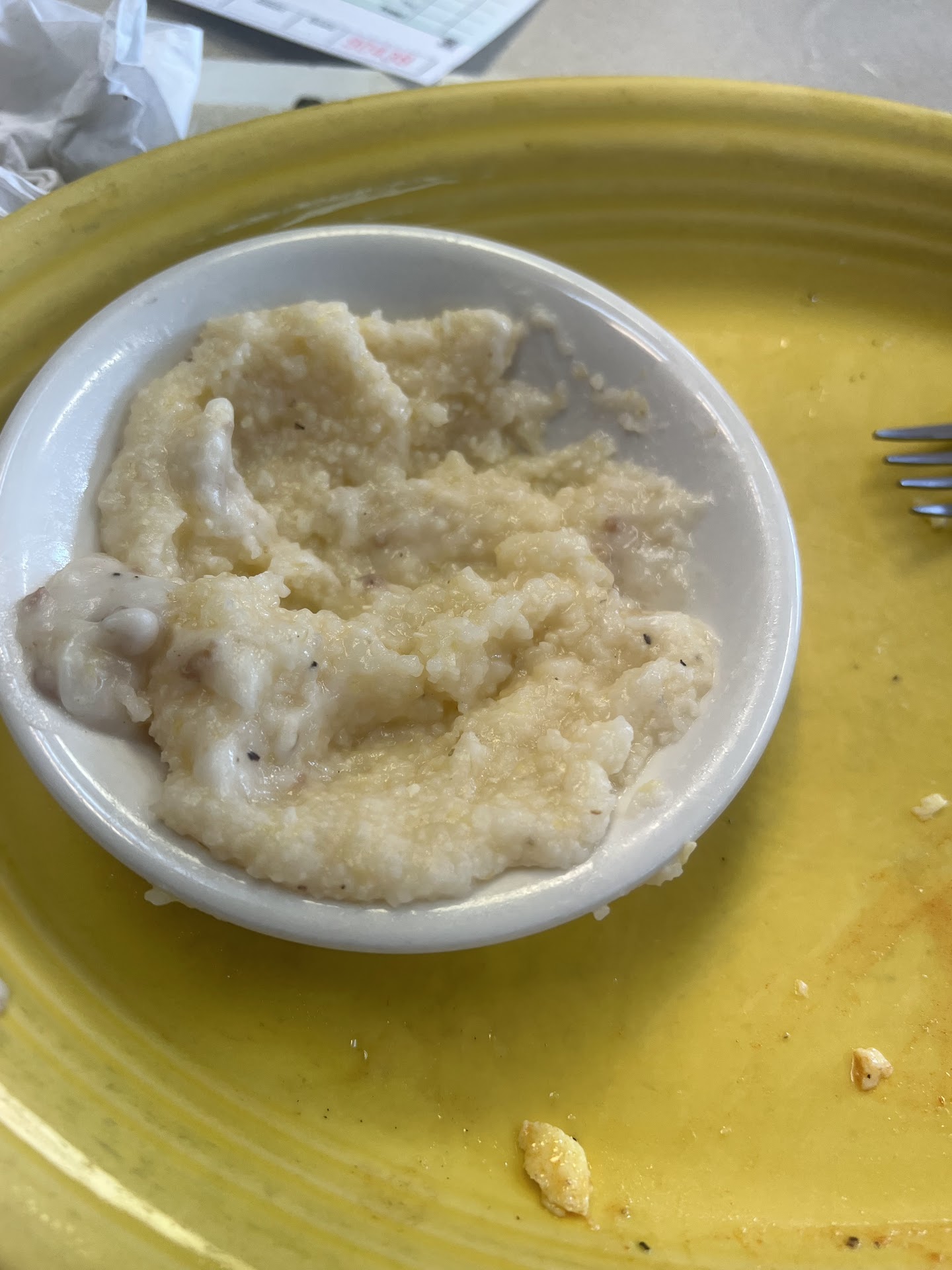 Only 1 of us was coming out as the victor. Upon receiving my 2 PLATES WORTH OF FOOD, I realized I had a fight ahead of me. I started with the biscuits and gravy. The sausage added a decent flavor but needed some salt. A dash of salt and the 1 biscuit the size of the plate was in my belly. The fluffy biscuit stood no chance. The grits were next. A nice big piece of buttery delight hit the mound of grits and got stopped by the protective layer on the top. Grit fans you know what I'm talking about. I mixed in my butter. A dash of salt and pepper and in as few bites as possible, I devoured the ground corn goodness. On to the bacon. I like my bacon crispy but not burned. The fat rendered out like a high quality duck breast. This missed the mark. It was wet and floppy and not what I was wanting. However, I understand that you may like it that way. If thats the case WRITE YOUR OWN REVIEWS!!! Kidding! Variety is the spice of life. Because I'm not a fan of wasting food, I did eat all of my sad bacon strips like a big boy. The made to order eggs were next. Over medium not quite. They were over easy. I'm a yolk fan anyways so I smashed it open and ate the gooey deliciousness. The country ham is not something that I get down with yet. Only living in NC for 21 years, I'm not quite there yet. I understand its supposed to be salty. Its salt cured. It brought tears to my eyes it was so salty. My tears were not as salty as this ham. There was also sausage included but I dont eat sausage on it's own but my fiancee said it was better than the place we went to yesterday. Oh the home fries...what happened to you? Was the cook mad at you when he was making you? Did you desire to go and become vodka, and he stopped you to become home fries. Did he hold a grudge while he cooked you up? He overcooked you so badly a fork wouldn't break you. The color on your skin was that of a lump of coal for your stocking. Sad day to be a potato at the Dixie Diner. The scrambled eggs were much better than at the place that I reviewed yesterday. The restaurant with Scrambled in its name.