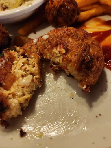 It’s in a Junktique—so don’t expect much. Located in Peddler’s Junction and advertising “Fresh Local Seafood” 100 miles from the coast--maybe you should reconsider. I wish I had. The dining area is dark and not well lit. You are literally sitting in a warehouse with 20 foot high ceilings and walls. Industrial heat lamps warm the place above your head like in an old gymnasium. The booths are giant and cushy and the other tables are surrounded by uncushioned, thin metal chairs. There is no décor on the massive walls just dingy, once painted brick or concrete block. Bare bulb fixtures are the only lighting along the walls so if you have low vision, good luck. This isn’t industrial chic, its industrial “sheet” if you get my meaning. There is nothing thought through in this place. Just dump some seating inside and there you go. A quarter of the space had chairs stacked on tables as if they weren’t even bothered enough to take them down after mopping the floor. As if they knew business was bad so why bother. If you need the bathroom you’ll have to search for it as there is no sign or guidance and is communally shared down the hall outside of the junk mart doors. The condiment tray offering is lacking with sparse packet sweeteners, and cheap glass dollar store, half-filled salt and pepper shakers. The waitress was nice but aloof and couldn’t force a smile. She was young and unexperienced—3 weeks on the job reportedly. We ordered the crab cake platter. I was quite surprised when it came out in less than 5 minutes. It was a lukewarm, deep fried, obviously precooked hockey puck pulled from a heat lamp or cabinet. I asked for tartar sauce and was given a half filled condiment cup with literally about 1 tablespoon of sauce. She also whipped out a half filled, glass bottle of Heinz labeled ketchup. It was no Heinz. It was the classic fill the bottle back up with generic catsup to save money. You can definitely taste the difference between Heinz and cheap refill from a metal #10 can. The “crab cakes” were most likely microwaved or had been in a heating bin. These were classic crab patties aka stuffing. It was unmistakenly commercial gruel that had been shaped into a “patty”. I assure you that no crab lost its life or even a stray leg for those “cakes”. In fact, the product was so cheap that the manufacturer didn’t even bother to add crab flavoring or fake crab to it. Nor did the cooks. A little fish sauce to make it stink and good enough. This stuff was public school lunch sad. The hushpuppies were stodgy and doughy inside. The fries were unremarkable and the red skin potato salad was made with sweet relish. That was interesting. In fact, it was served in a monkey dish and put on the round plate to fill up the space. So much for a $15 platter. When the bill came it had a “3% Service charge” on it. I asked my waitress what that was for. She didn’t know so she asked someone else. Turns out it is for “using a credit card.” I didn’t ask anything about payment options, it was just there on the bill. I asked if I pay her or at the hostess desk. The waitress said “I’m not doing anything, so I can take it up for you”. I opted to take it myself and ask again about the charge. I had to actually ask about paying cash for her to remove it. Of course she had to use a calculator to do so. In reality, it I hadn’t asked, I would have been charged the extra fee even though I paid cash. That’s called grifting. And they should name this place the The Grifty Crab because the whole experience was overpriced, under whelming, just plain wrong. A real tourist trap. Seems as if Laurel has plenty of places like this since they got their new found “fame” from the “hit” TV series. No thanks. But if you want to experience it yourself, check it out. All these “great” reviews are written by folks who don’t know any better and/or don’t care to. But heed my advice, no crab lost its life for those patties, and no one who has a palate above school lunch grade...