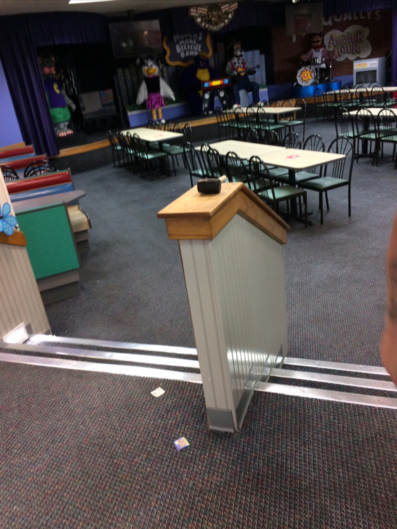Extremely disappointed in the conditions of Chuck E. Cheese an the staff. You have to ask the employees to get up from the booth so you can buy something or just come in the door or try to leave on at least 6 occasions and we were only there for 90 minutes . Also it is a joke the check in check out process they said take a selfie of your family but didn’t care that the picture the kids face is not facing at all. Also there was only one other family there an of three people the only game my child likes is the one with clown you throw ball in mouth or any where you throw the ball in something and both of those games were blocked for it to be sanitized but when asked about it they didn’t feel like turning it on right now so then we left took the food we ordered in Togo stuff an went to play ground poor kid was bored . When we were up by the prizes of course no employees on the booth open to all is a box of tacks scissors and stuff the employees were using many hours prior I never seen anyone touch the table once in 90 minutes. Also on the banister was a hammer my child who is two actually grabbed off the table before I could grab his hand . That is how I first found out about it thinking benefit of doubt I will see maybe it was only for a minute they would clean it up and never did ever . I have...