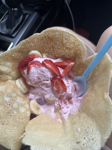 Read moreAbsolutely delicious. Freshly made with fresh ingredients; chicken tender stewed,moist, well seasoned, veggies cooked perfectly, crepe was soft and with a nice chew. I got the chicken and schrooms crepe, and my daughter ordered the TEC crepe (turkey bacon,egg, and cheese). Spicy sauce is sweet and then the spicy hits you on the backend. Definitely going back. Check out the menu and see for yourself. The young lady there makes them when ordered and she was the only one behind the counter. Be...