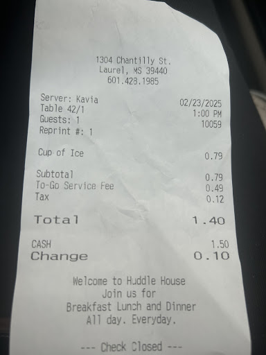The food is always REALLY GOOD. I know it's huddle house and it's next to a gas station but they really do have good food! I usually get the chopped steak dinner with loaded mashed potatoes and a side salad. The chicken fried steak is good and the steak tips are also one of my top picks.
