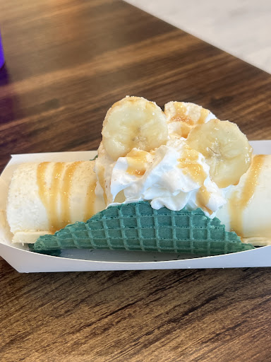 Read moreLa CrĂšme RoulĂ©e is a dessert dream come true! I tried their Banana Cream Pie rolled ice cream taco, and it was pure heaven. The creamy banana-infused ice cream was perfectly balancedânot too sweet, just right. The fresh banana slices, whipped cream, caramel drizzle, and the vibrant blue waffle shell made it as beautiful as it was delicious. You can tell everything is made with care and creativity. Highly recommend for anyone looking for a fun and flavorful dessert experience!