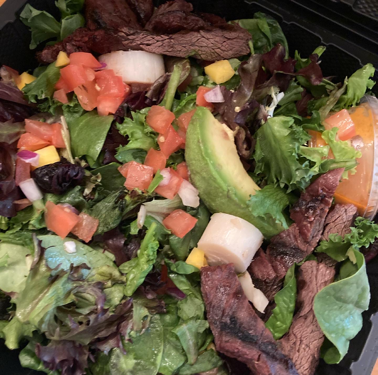 I was super surprised by the salad. For the price and the amount of steak you get, I’m impressed. And yes I loved the fresh mango 🥭.