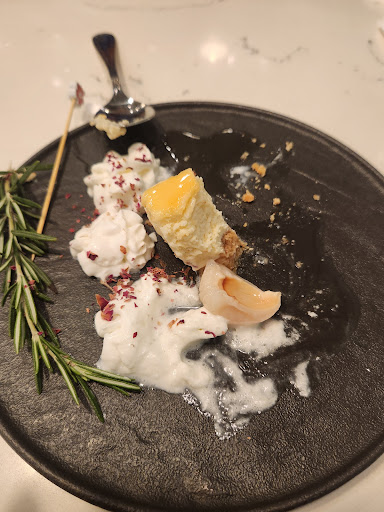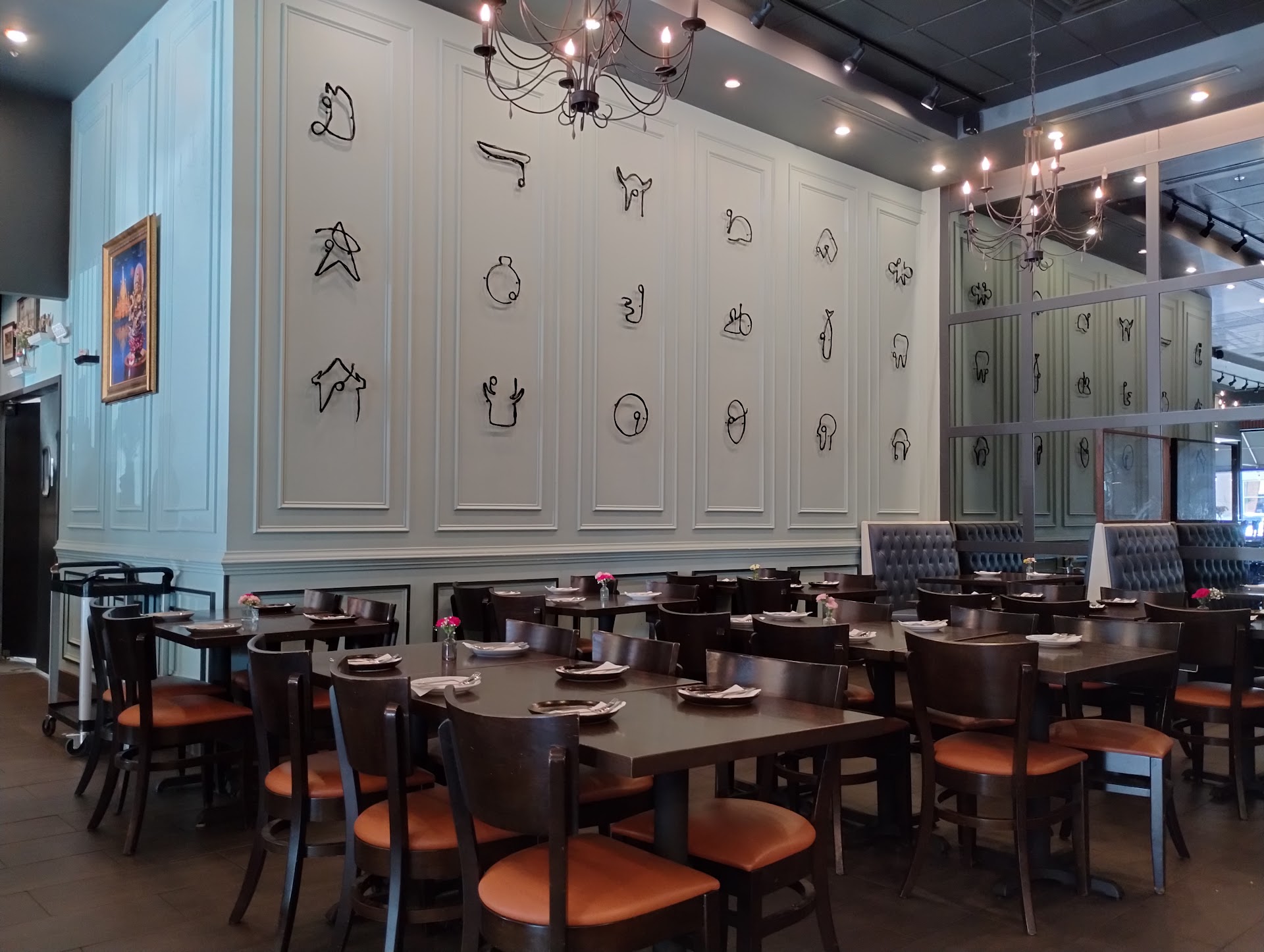 The restaurant itself is really nice, with great color schemes, an upscale yet laid-back ambiance, and nice seating. The blue leather backs and the mirrored wall give it a nice cozy feeling. There is a decent bar as well. Service was great as well with attentive servers.