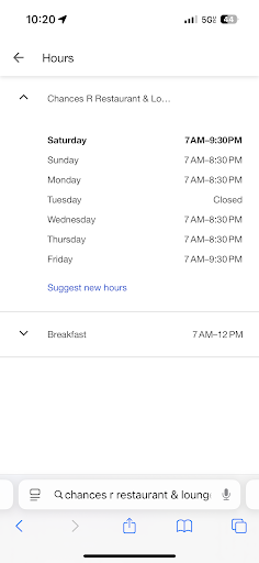 Read moreWe came to Chances R at Lake of the Ozarks to celebrate my grandpa’s 80th birthday. Google said they closed at 9:30, so we arrived at 8:20 — plenty of time, right? Apparently not. Our waitress was rude from the start, rushed us to order, never refilled drinks, and had no idea how to answer basic menu questions (like the difference between two fish options — her response: “Well, you figure it out.”) 😳