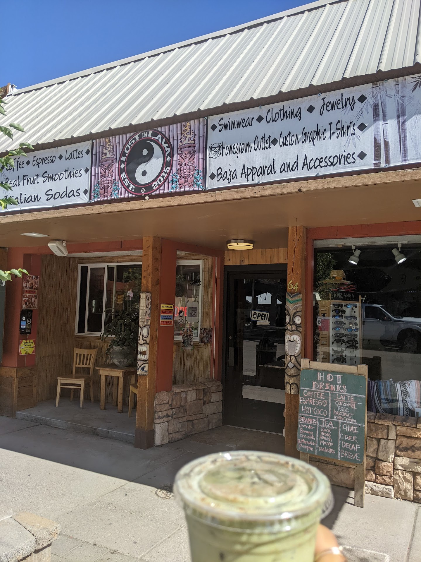 Read moreStopped in this morning to grab some drinks before beginning the morning adventures and were very happy we did. I had a mocha and my wife had a "Spicy Chai" which had nutmeg, cinnamon, and vanilla in it and we both loved it. Super fast service and plenty to look at around the store while you wait. My favorite thing was they had some custom decorated hats for, in my opinion, very reasonable prices. Those really...