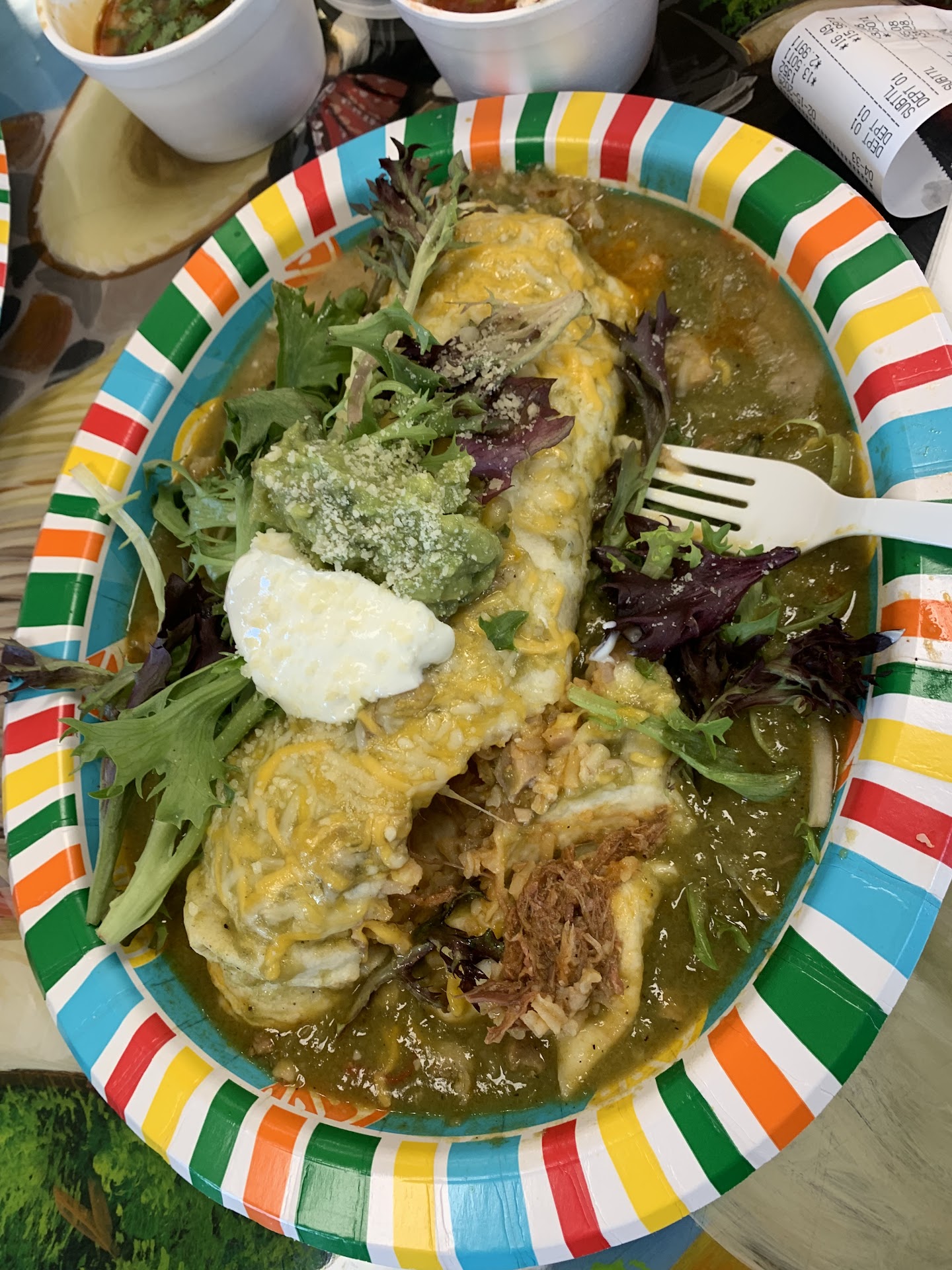 Food was average; not bad but weirdly not the tastiest Mexican food we’ve ever had. The food seemed to lack seasoning… which is a first because most Mexican food we’ve had is well seasoned. We got the Verde Burrito and the Quesabirria… both of which desperately needed more flavor. The dipping sauce/soup the quesabirria came with was watery and simply tasted like a watered-down broth. The green sauce tomatillo sauce saved the dishes and gave them a little more flavor… although I feel like the sauces from the salsa bar could be tastier. They seemed to run flat but spicy (interesting of a sauce to be flat yet spicy). Something was missing… perhaps salt and some other kind of seasoning to enhance the flavor.