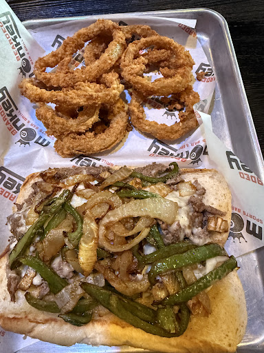 Brother and I got the Philly cheesesteak. Onion rings and tater tots. Range rattlers.
