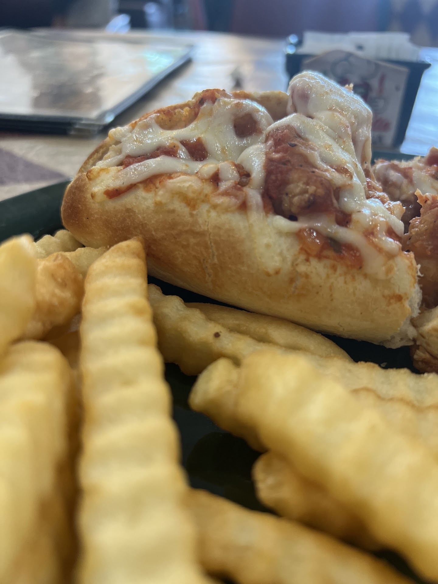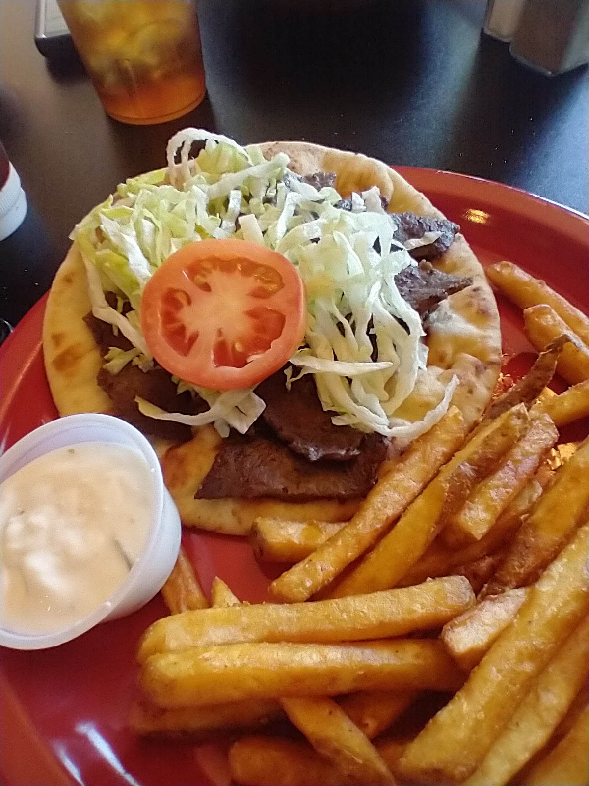 The Gyro meat was good, although maybe frozen, not made on property? Didn't ask, just going on taste. Odd it was paired with french fries (not very Greek). Won't get it again. Probably try a pizza or calzone next time.