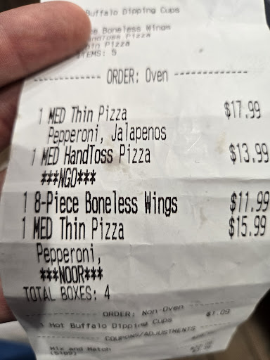 Ā Ā Ā Read moreI ordered a small pizza; pepperoni, mushrooms and olives. When it arrived, it was a pepperoni, mushroom and sausage. Unfortunately I donāt eat sausage. When I called, Nichole was really awesome and helped me quickly and said sheād get me a new pizza. She then called back to let me know that I cannot have the new pizza unless I return the wrong pizza and it had not been touched, per her manager āJesusā. Huh? Really? You made a mistake and now your demanding that you wonāt make things right unless I return the original pizza. Itās rude and shows a lack of care for the customer. I have to wait another 45-60 minutes for a new pizza and will they will hand it over if I hand over the original. Super janky! Keep in mind, Iām not going to eat it, itās the...