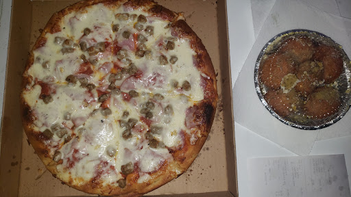 Read moreLove their thick sweet crust pizza with stewed tomatoes! The best! Especially with sausage and black olives. Gave them 3 stars only because the cashier lied to me about the bathrooms availability. She said they were not working, but I could tell she was lying because she hesitated as she looked back towards the restrooms before she answered me. A simple, truthful answer like "they are closed because of the pandemic." But, still, I was a paying customer and not some transient, homeless person wanting to mess up their bathroom. She could have allowed me to use the bathroom since I was a PAYING CUSTOMER. Glad I didn't put any money in her tip...