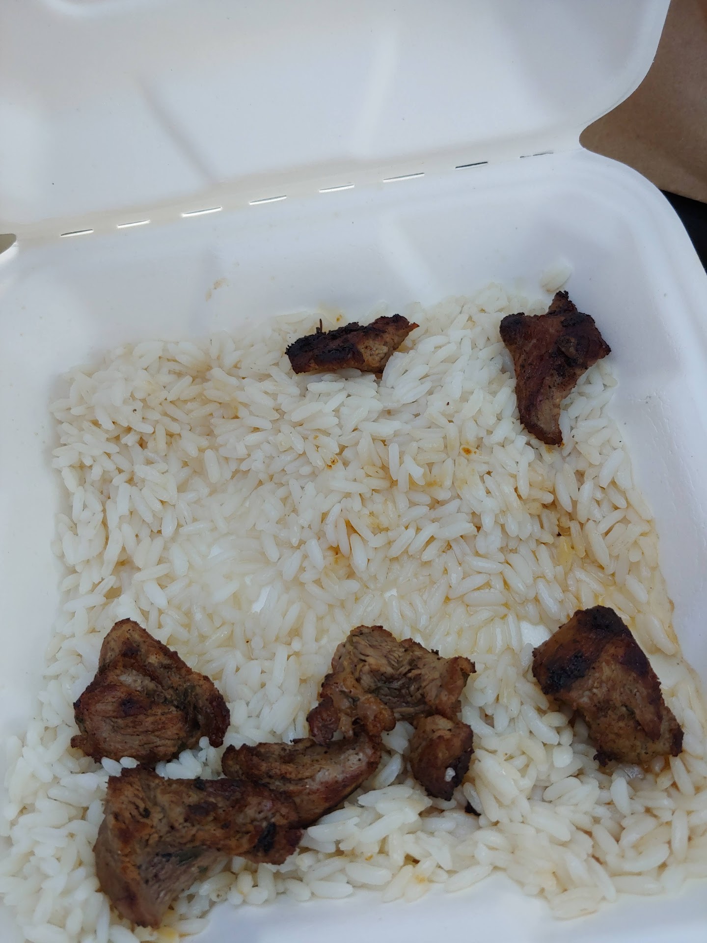 Read moreThey got my order completely wrong. Ordered a flank steak served with rice, potatoes, onions, and tomatoes. They gave me rice with overcooked streak bits. It literally looked like someone's left overs, and the box was already soggy. Then when I brought it back to fix it, they just poured onions pepper and tomatoes onto it. They did not sautee it with the steak, did not recook the steak which i ordered medium, and there are still no potatoes. Not to mention they did not have the fried ravioli I ordered, and I didn't see the charge removed from my...