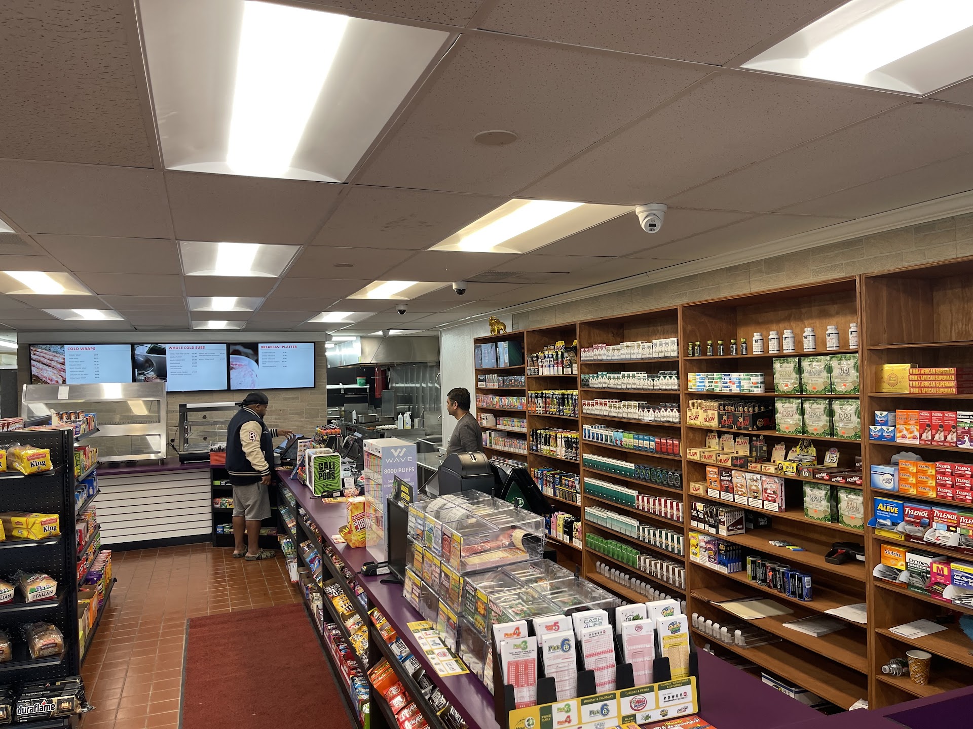 My wife I just visited this establishment. We both got turkey hogies, one plain and one Cajun. So as far as food goes it wasn't bad at all, but that's not what got this place a two star review. My wife and I had been in the store every bit of 3 minutes before an older man came from behind the counter and walked around behind us and off to the side pretending to check things on the shelves and shuffle around merchandise. He was keeping an eye on us as my wife is black and I Puerto-Rican, we immediately picked up on the vibe in the store. A man approached the counter and asked what we want, no smile, no politeness at all and upon ordering didn't seem in the least interested in any questions about the food we may have and quickly left us standing there as if he had better things to do than listen to our order specifications. Needless to say they won't be getting our...