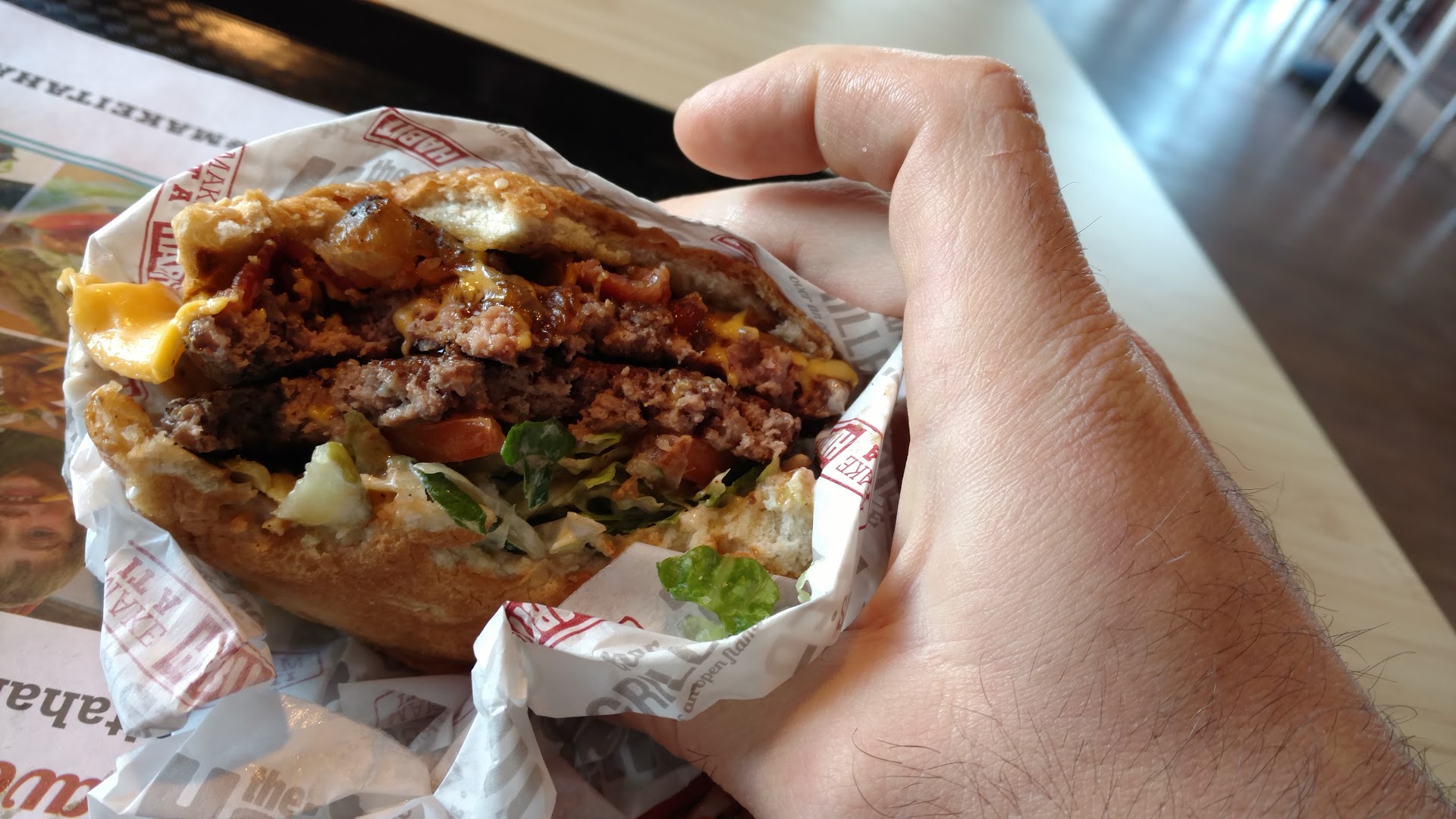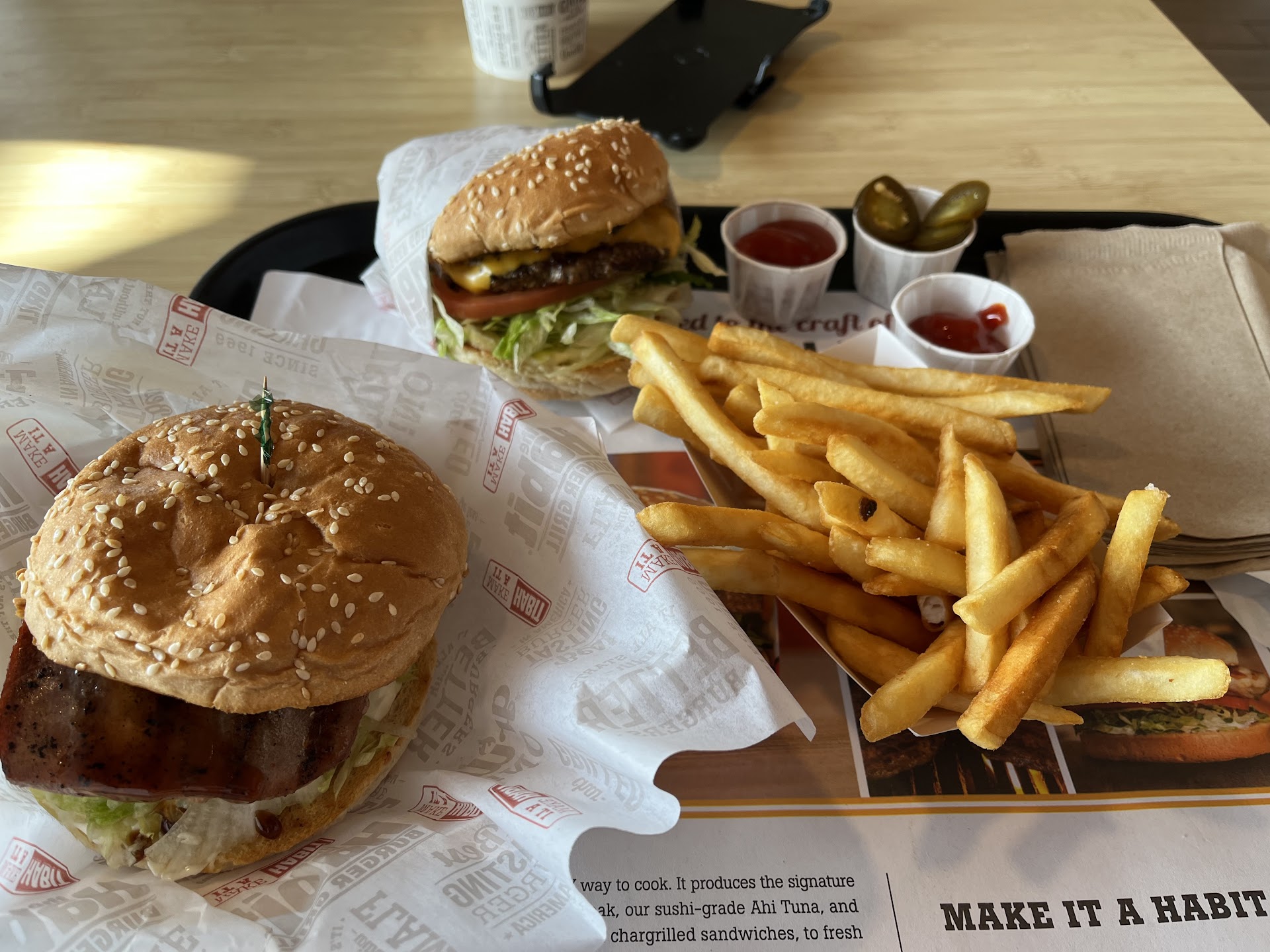 Read moreFirst impression walking in was of a nice, slightly upscale burger grill. Walked in and the prices were cheap and employees did well with acknowledging guests. Only took a few minutes after sitting at my table for my buzzer to go off so i could walk back to the counter and grab my food. I got the #2 double cheeseburger w/ fries, and the Ahi Tuna sandwich. Food overall was good and I’d surely get the Ahi again since it was cooked well with a little char.