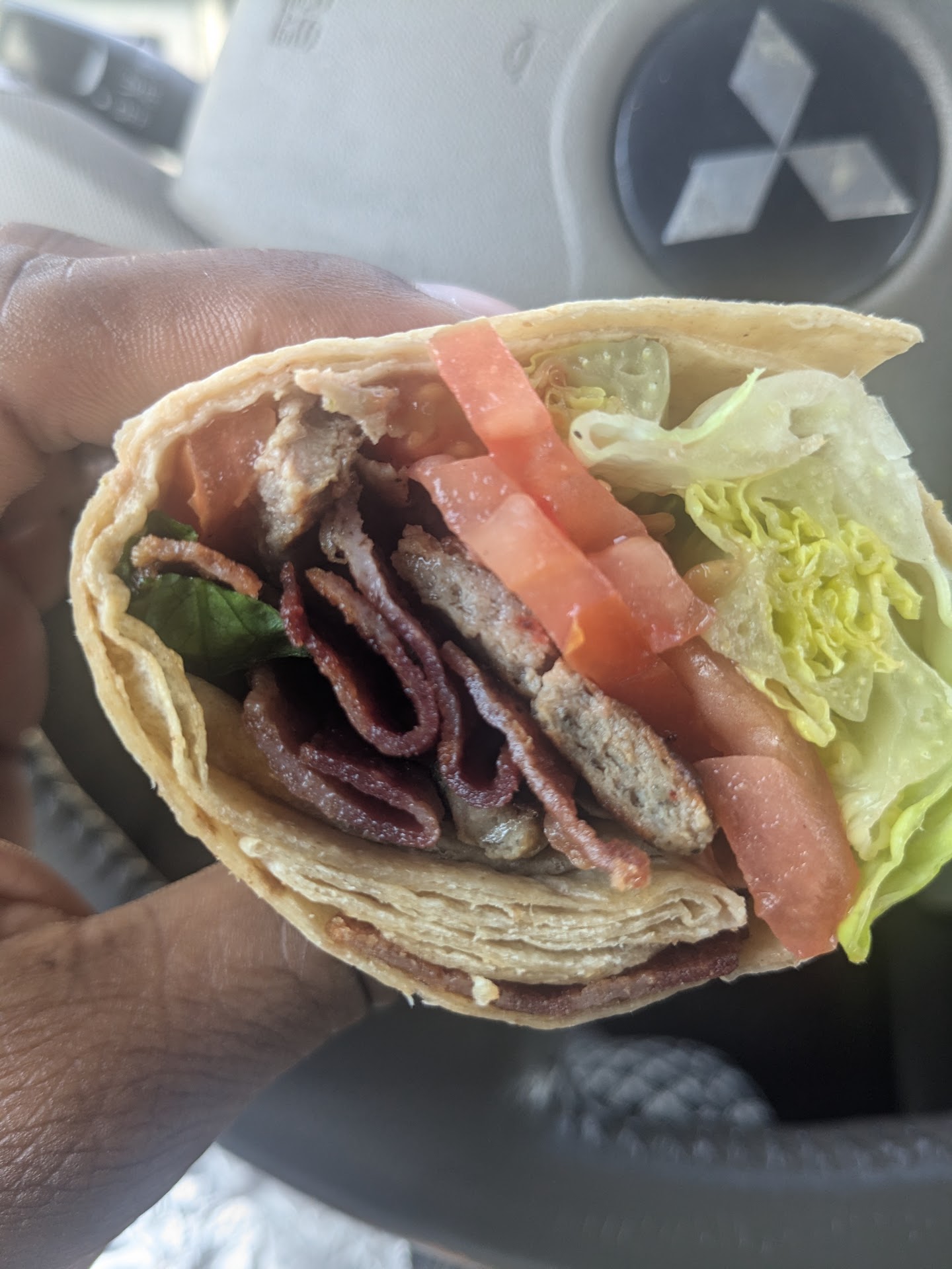 I wanted to get breakfast before my interview so I stopped here. It's a cute place located in the Lawrenceville shopping center. So when I centered the restaurant I looked over the menu and waited for about 2 mins before I was even acknowledged. The woman behind the counter asked me what I wanted so I ordered a breakfast wrap with no egg, lettuce, tomatoes, onions, light on the cheese, turkey sausage and turkey bacon, with mayo. I also purchased a freshly made strawberry lemonade. After my purchase I went to my car and I ate my breakfast there, as you will see in the pictures below my wrap was very very dry. There was no mayo nor did I have cheese as I requested on my wrap, The turkey bacon was very hard ( the drink was absolutely delicious). As a foodie I would like to get what I paid for as would anyone who is a paying customer. I really don't like it when my order is not the way that I asked it to be. So with that being said, will I return to this place.... probably not. The order was very simple to get right and they...