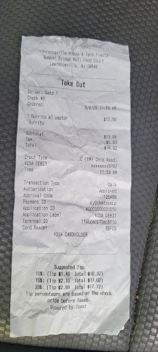 People.....if you are at Quakerbridge Mall with a hankering for a slice of pizza, DO NOT EAT HERE! This is not even pizza's cousin! It was awful. We tried the cheese and sauce pie....lousy. We tried the broccoli and white pizza....even worse than lousy. And pricey to boot. We also got a bottle of water and asked for a cup. He said we had to give him 27 cents for the cup! They did, however, allow us to take a napkin! What? There wasn't anyone else in the food court with pizza but...