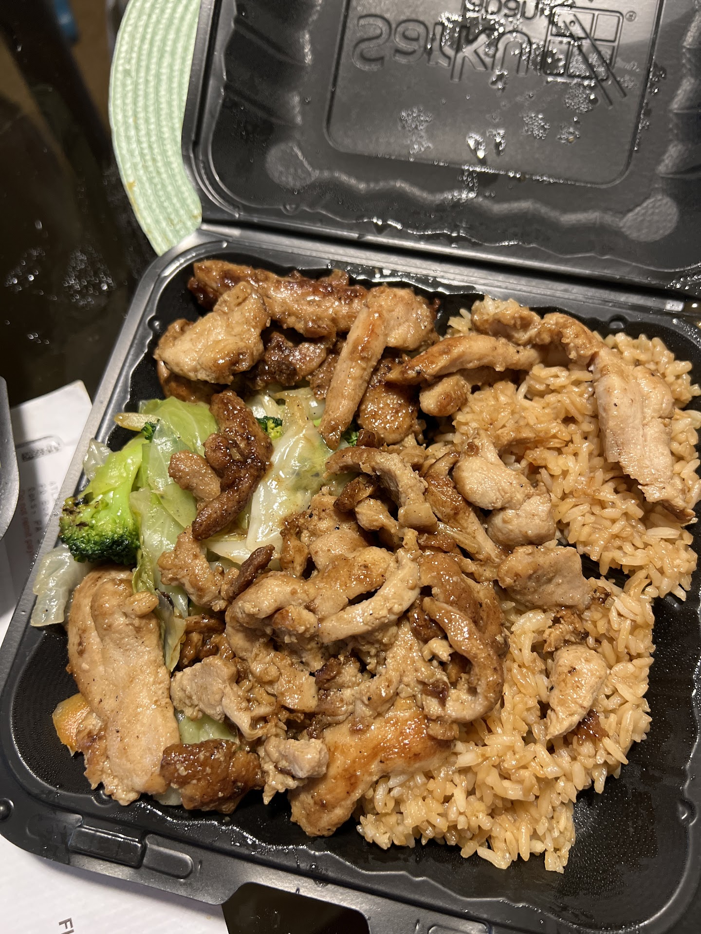 The signs are dusty, they need to clean them. I wonder how many times I’ve said the food is good and dust probably falls from the sign that they clearly don’t clean. Second of all I don’t wanna sound racist or sound like I’m discriminating, but the Japanese people who worked here have always obliged and seek customer satisfaction. Now there’s only Spanish people working and some of them aren’t even trained and don’t understand what one is trying to tell them! I always buy my chicken teriyaki with chicken and shrimp, and I add extra chicken and shrimp. I pay around $18. Some of the servers know how much chicken to add when one requests extra chicken. They scoop up the chicken two times with the long turners. BUT IVE BEEN HAVING A PROBLEM BECAUSE lately there’s this one guy I don’t like because the first time he attended me and my husband I told him that he didn’t give us extra chicken. He stood there looking at us confused like if we had grown a third head or sumn. So the lady who rang us up came and asked what’s up and we informed her he didn’t give us the extra chicken. She looked at the plate and even she nodded her head and told him to add extra chicken. Today at around 4:20 PM she wasn’t there so I had no one to back me up, and I even asked him “you sure this is extra chicken?” He nodded his head. I was a fool because I know they normally give me two scoops of chicken and I only seen one, I should’ve said something right then and there, but today there were only guys. And none of them have worked there for a long time. Keep in mind: I go there like at least once or twice a week, so I’ve seen different faces. Again, I was there when Japanese people first worked! And they served everything with the right amount. It’s the reason I always go there. But lately I’m starting to think, is it even worth it? My and my husband are just so disappointed. Their competitions serve more meat than them now. They gotta train their employees serving portions. Because one is paying close to $20 for extra chicken and shrimp, and I’m basically getting ripped off! I could go to a restaurant and get three pieces of meat. Like what’s...